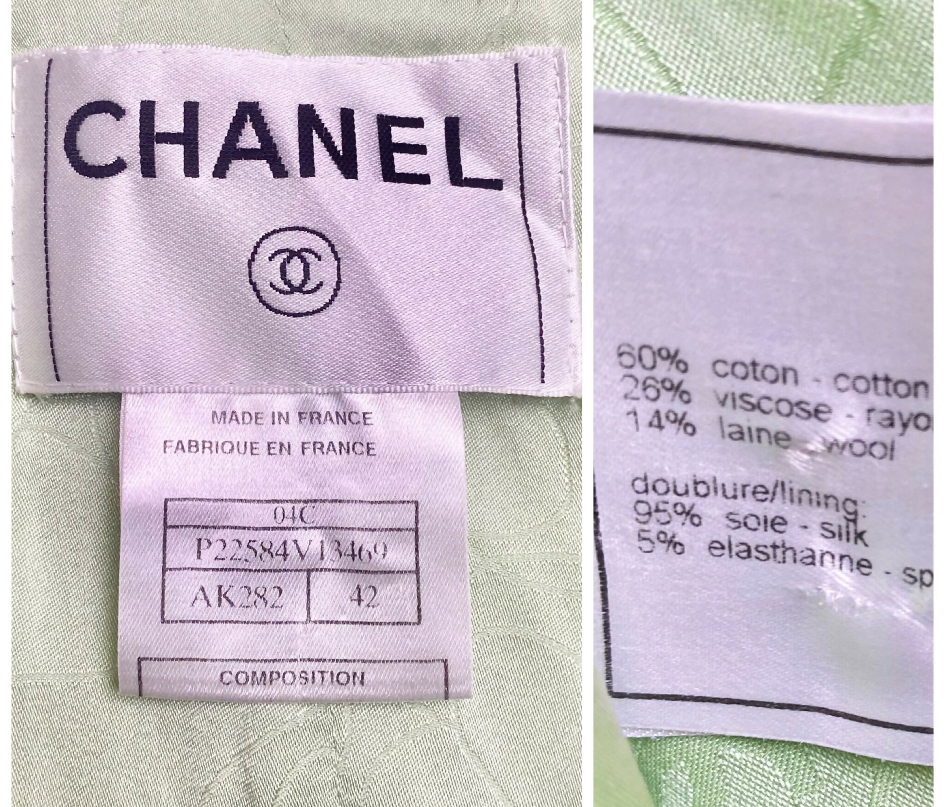 Chanel 04C Mint Green Tweed Boucle Zippered Appliqués Jacket FR 42