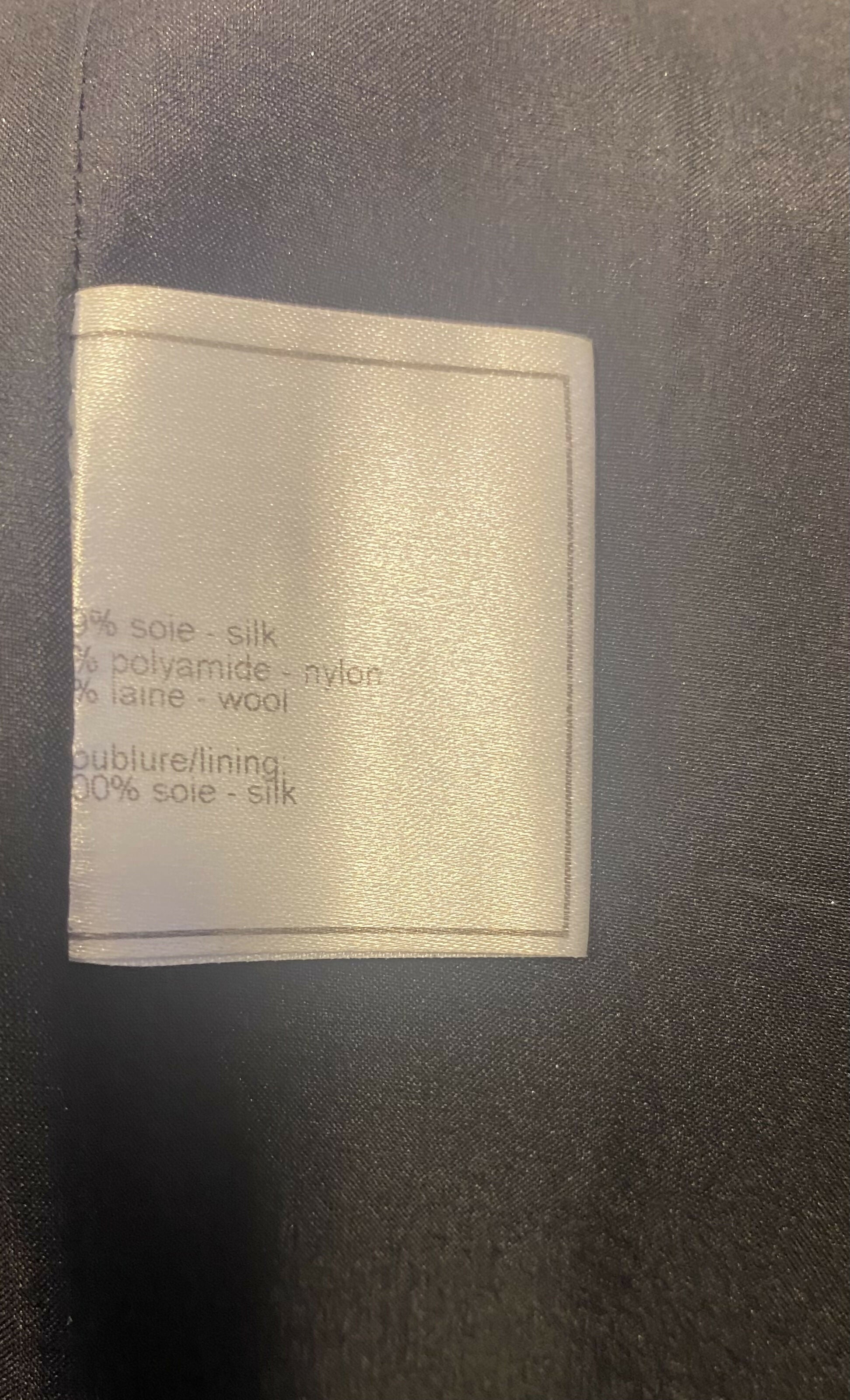 Composition: 89% Silk, 7% Nylon, 4% Wool; Lining: 100% Silk