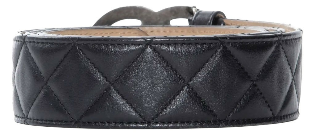Chanel 10A Black Quilted Lambskin Ruthenium Silver CC Logo Belt 90/36