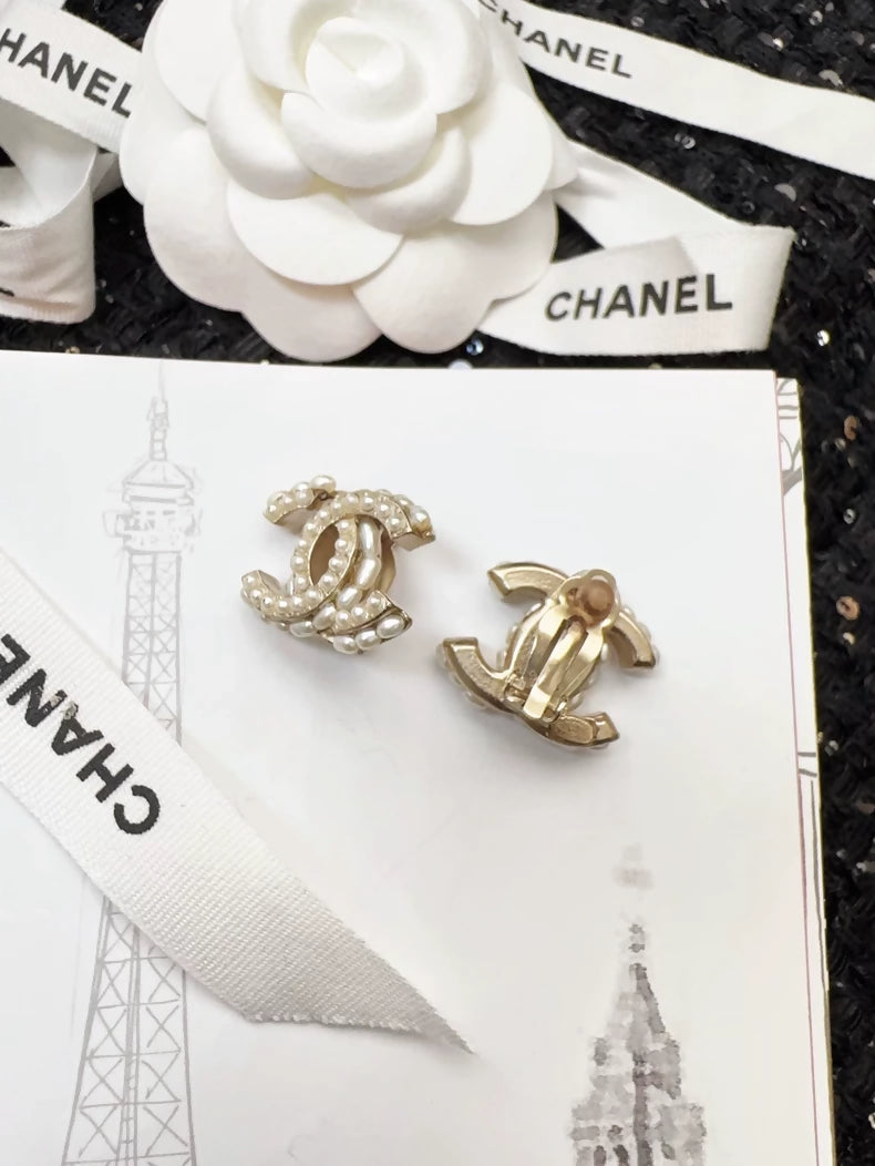 Chanel 15B clip-on earrings with double C logo and pearls