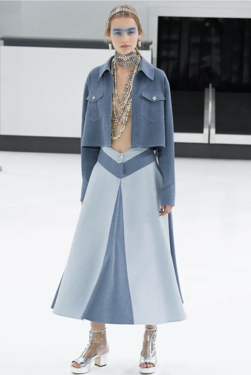 Extra Long Statement Piece From the 2016 Spring Summer Chanel Airlines Collection by Karl Lagerfeld. Featured on runway look #85 in silver.