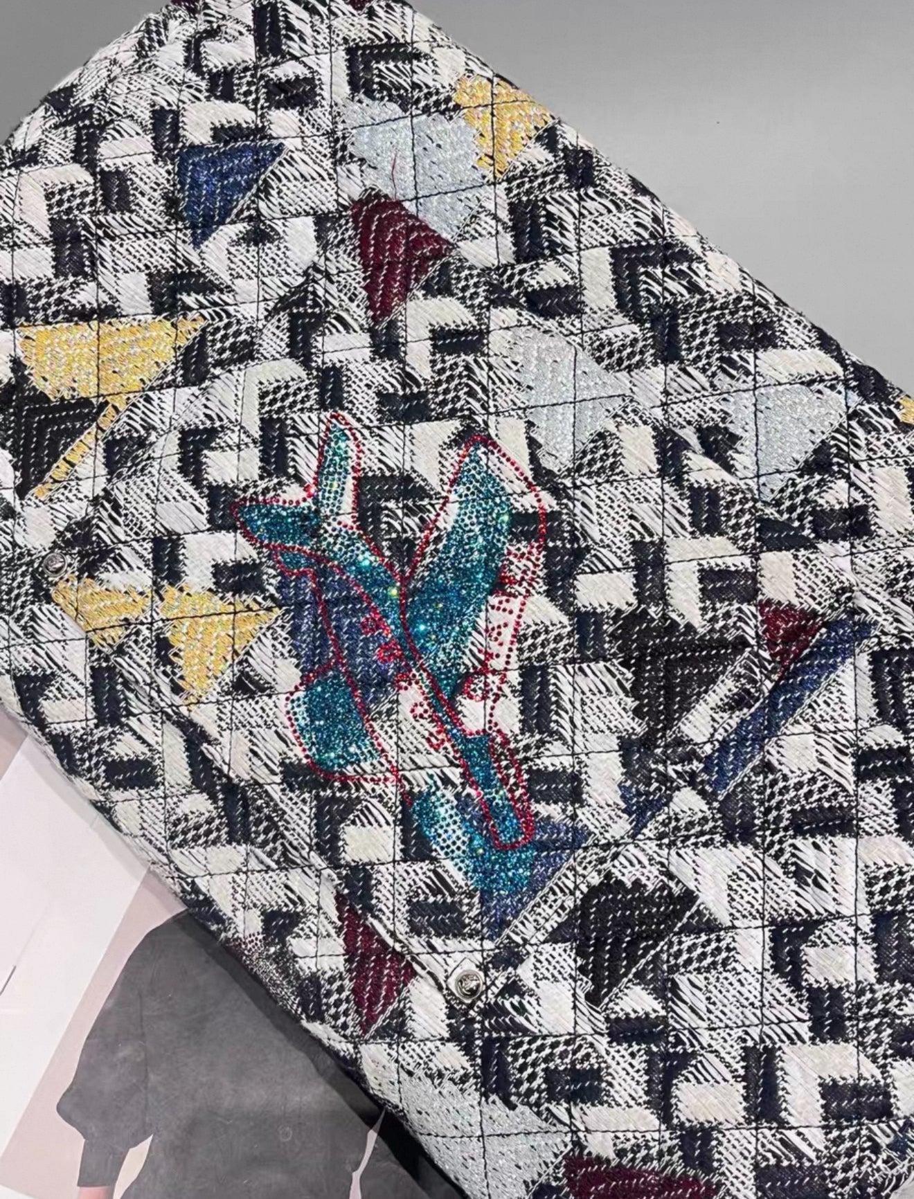 "The Chanel 16S airport collection Large Flap Bag features rare and beautiful airplane details, adding a touch of elegance to this spacious and practical bag. With its unique design, this bag is perfect for the fashionable traveler." Size 22