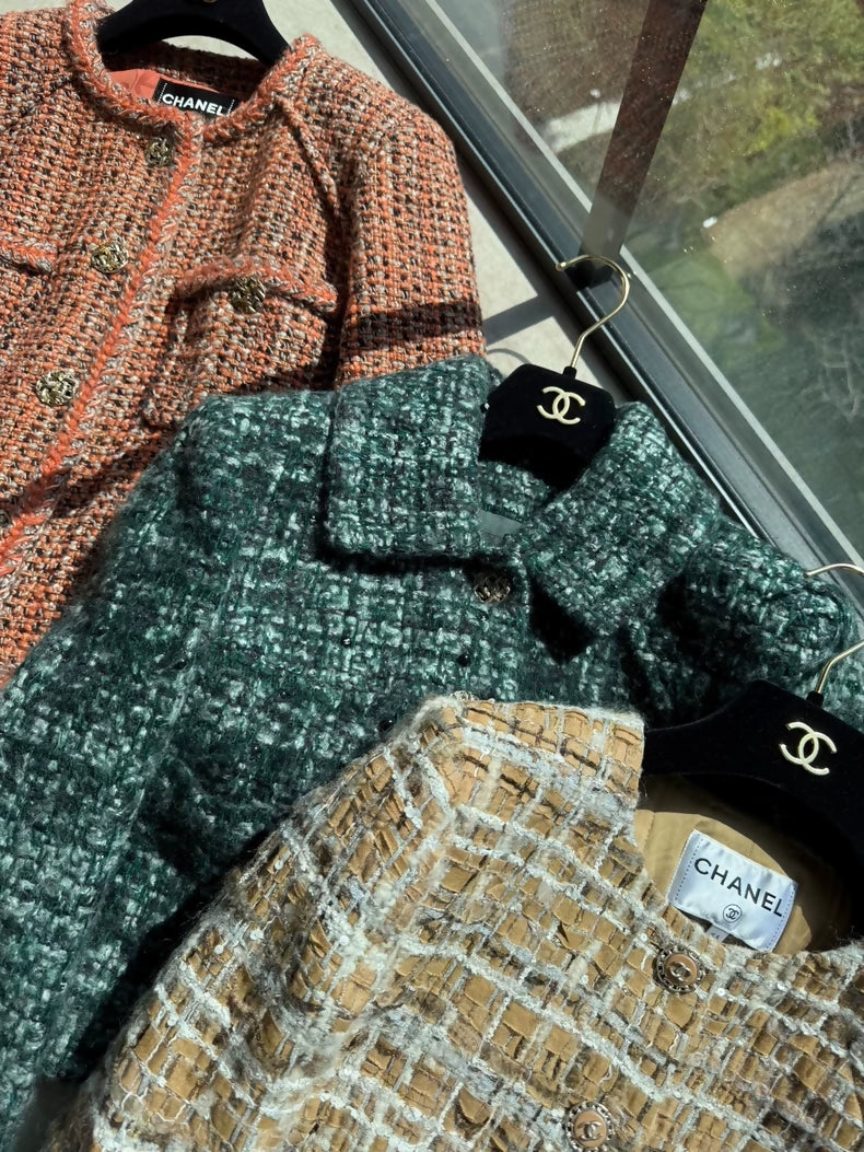 Indulge in the sophistication of our Chanel 18k Green Tweed Jacket from the 2018 Forest Collection. This luxurious piece, in size 34, exudes elegance and exclusivity with its 18k gold accents. Impeccably crafted in France, this new-condition jacket will elevate any outfit to a work of art.