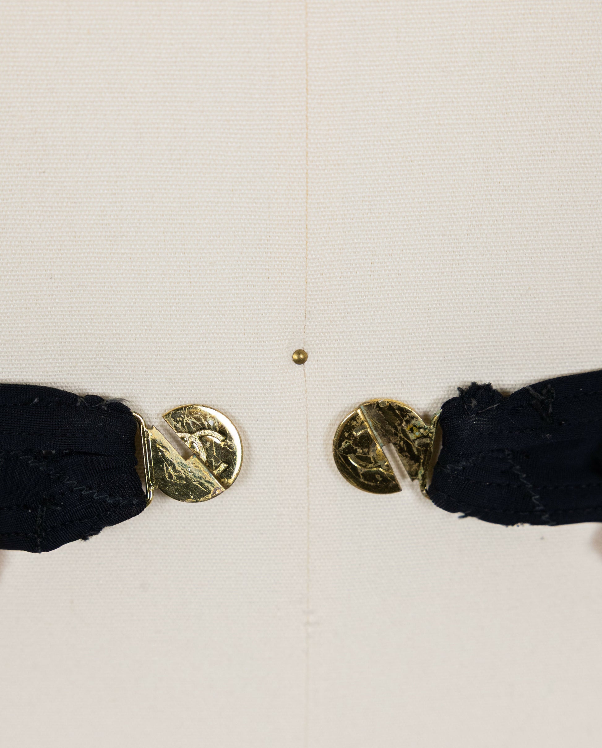 Condition: The bikini remains in overall good condition with an expected sense of use for its age. The sizing tag is faded but still indicates size 40 upon close inspection. There are some fabric pulls, and a few strings have loosened over time, but these do not impact wearability and can be reinforced if desired. The CC logo remains intact with no significant fading. The clasp has some residue and signs of wear, though it functions properly. Please see photos for details. Given its rarity and iconic statis, this is a valuable collector's piece that can still be worn and enjoyed.