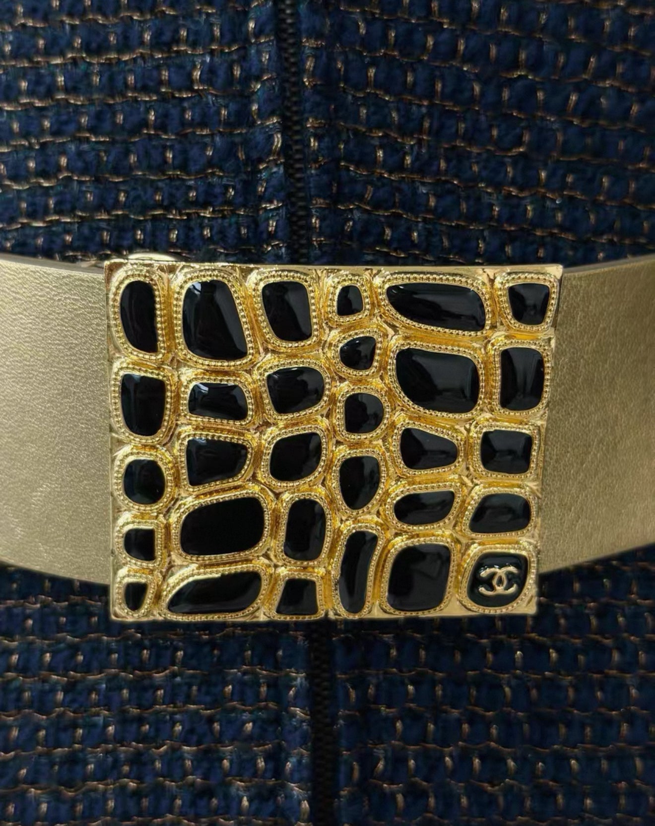 Chanel 19A Navy Blue & gold Embroidered Tweed dress