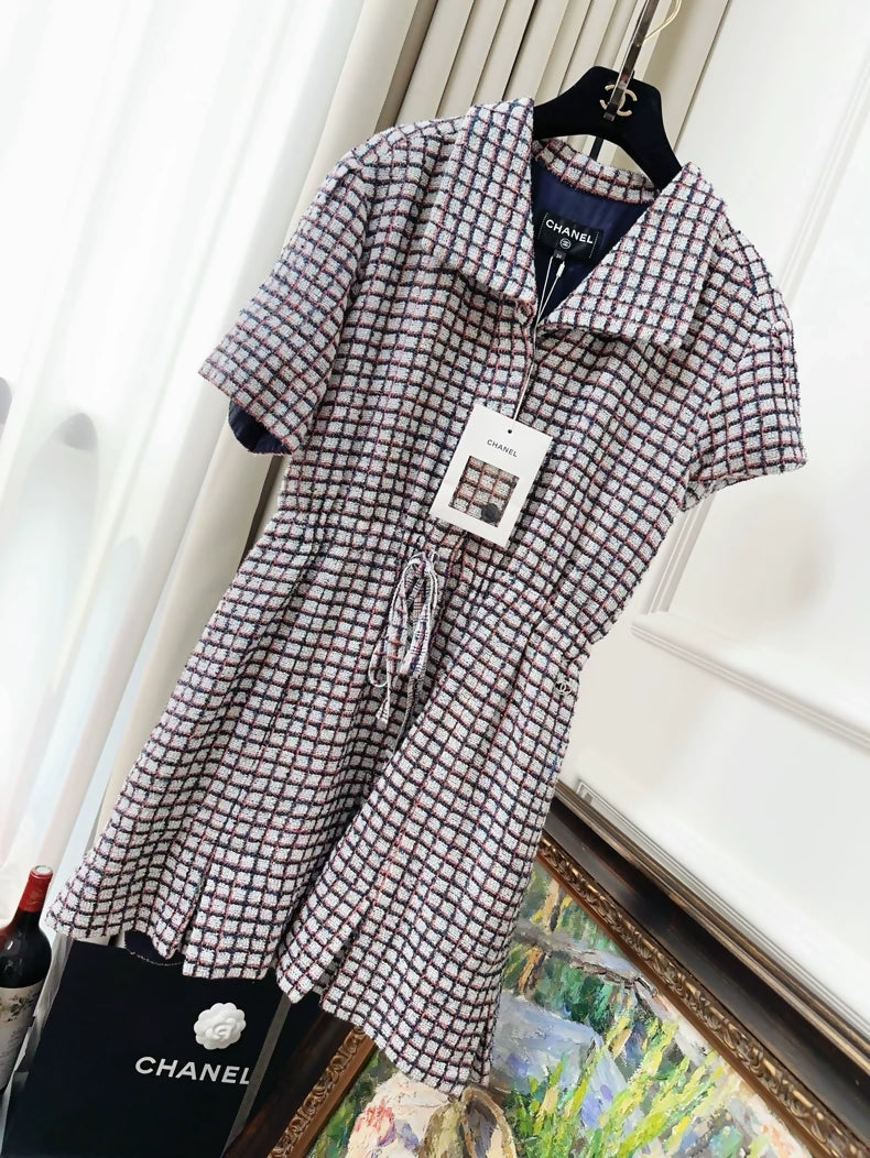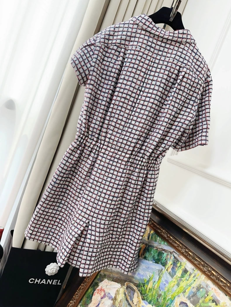 This Chanel 19P dress features a vibrant red and blue check lace-up design, perfect for the spring/summer season. Made from high-quality material, this dress is sure to make a statement and add a touch of luxury to any wardrobe. Available in size 36, this dress is in excellent condition, almost brand new.