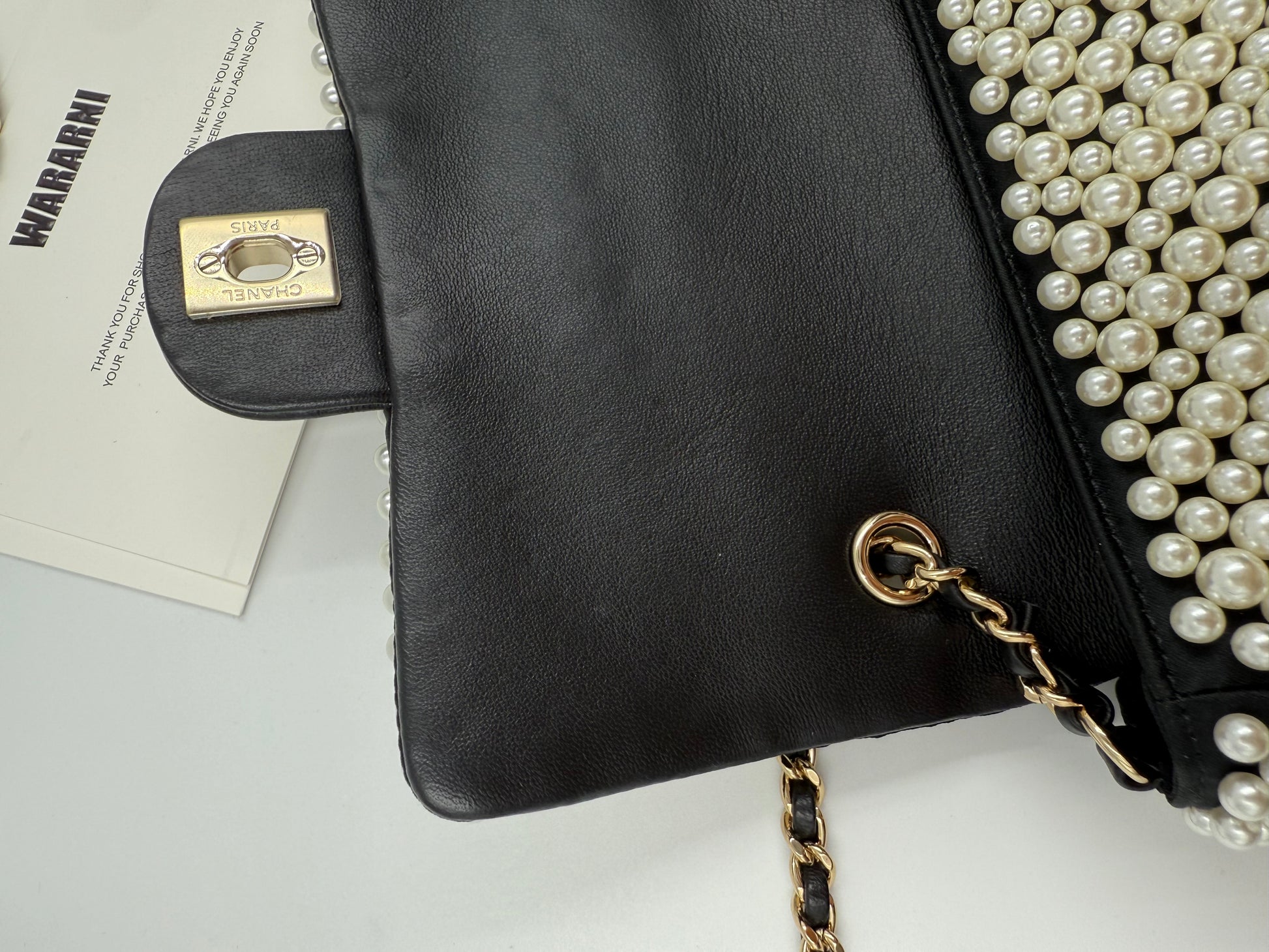 Its rarity places it firmly within the category of investment pieces. Pearl-themed minis from 19S were produced in extremely limited quantities, quickly selling out worldwide and becoming highly sought after on the secondary market. Their value has consistently appreciated due to the combination of iconic detailing, seasonal scarcity, and the enduring prestige of the CHANEL mini.