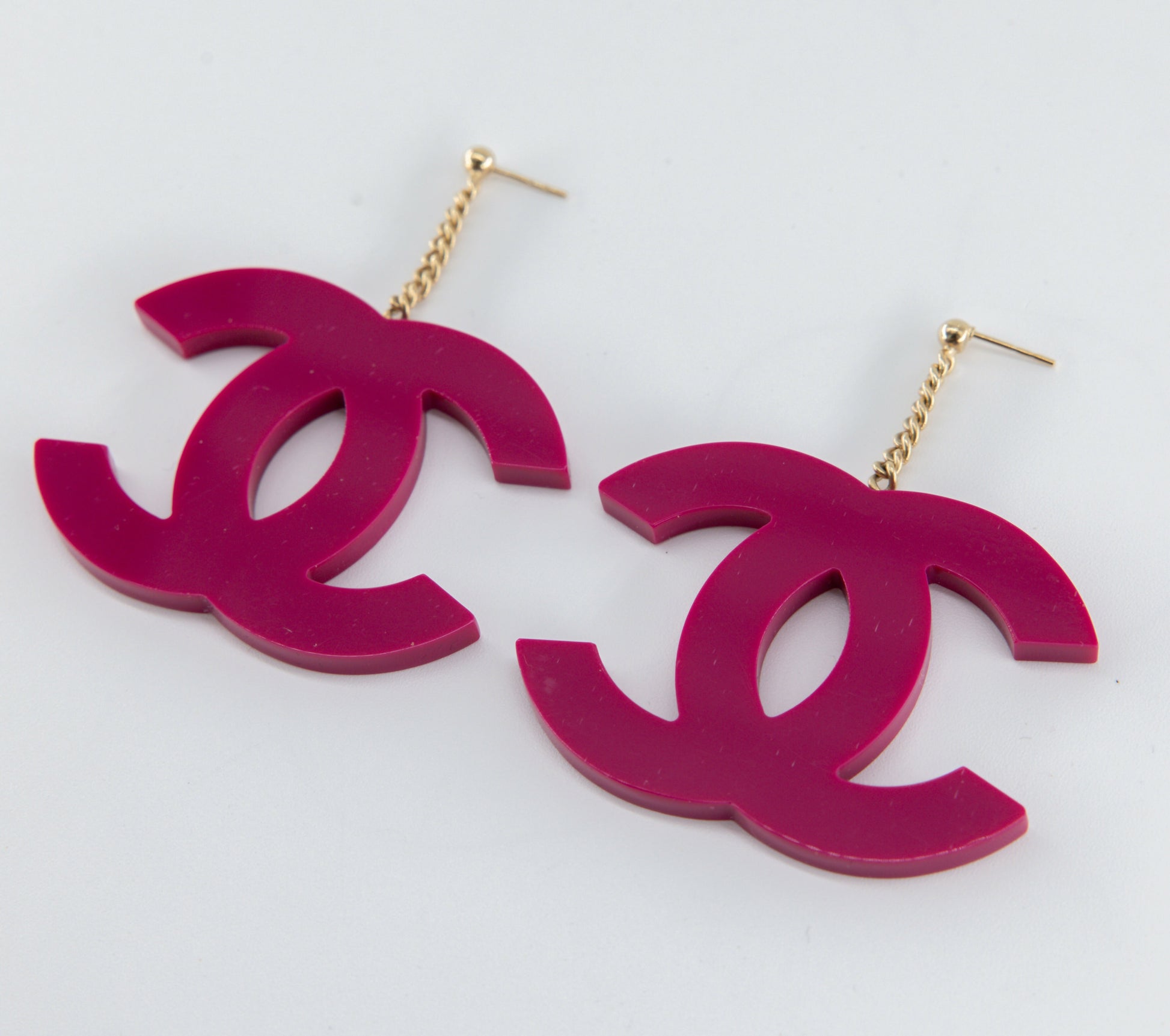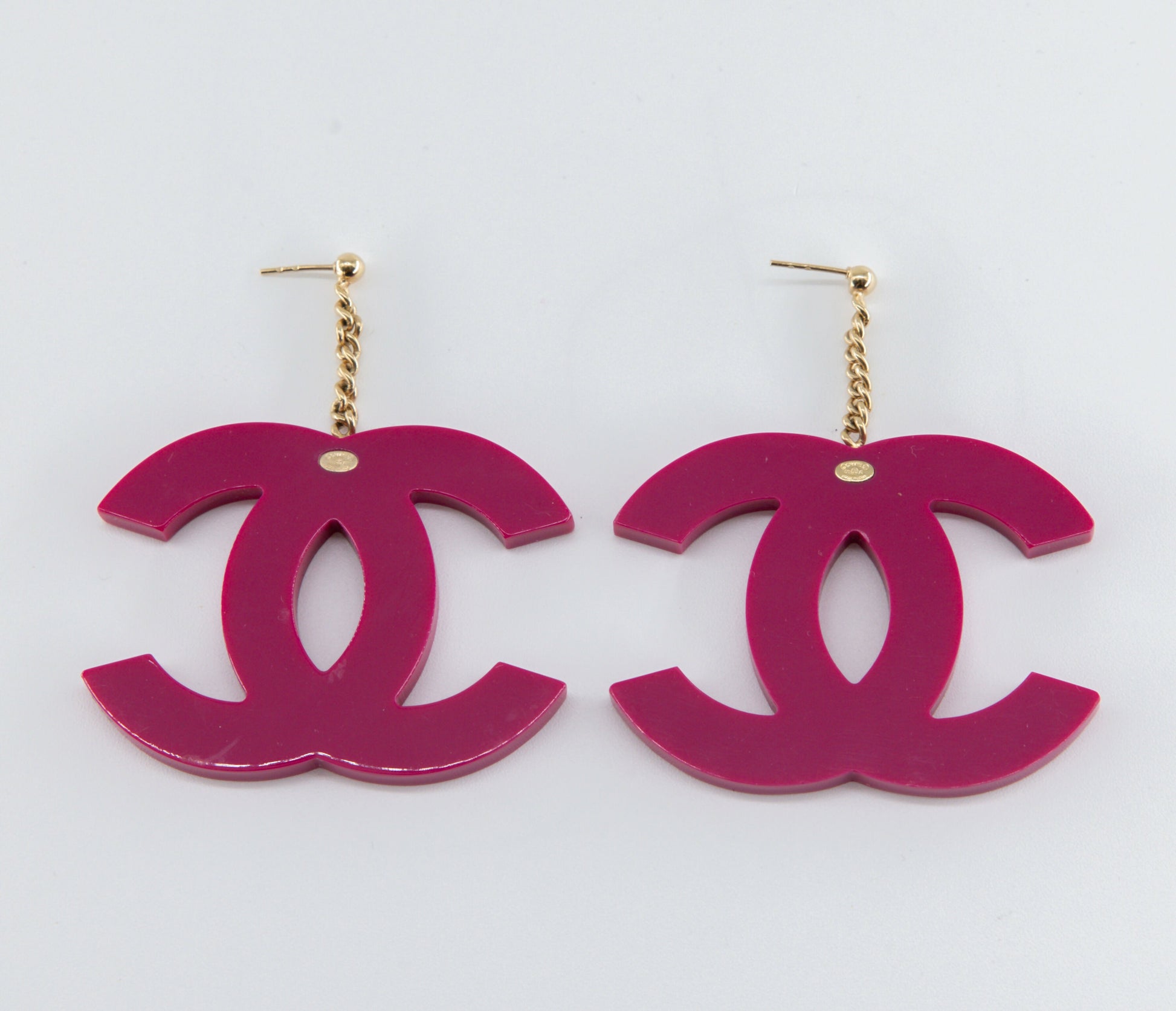 Chanel 2000s Pink Acrylic Large Logo Dangle Earrings