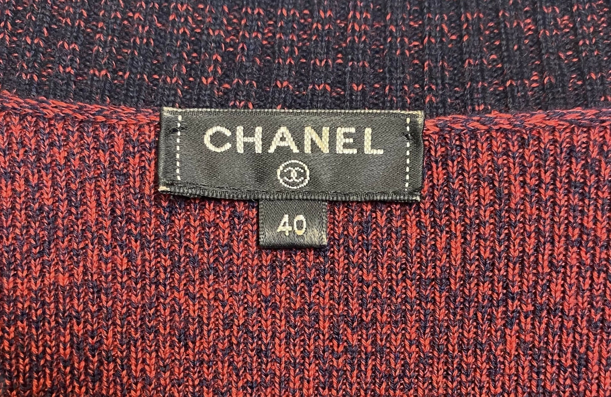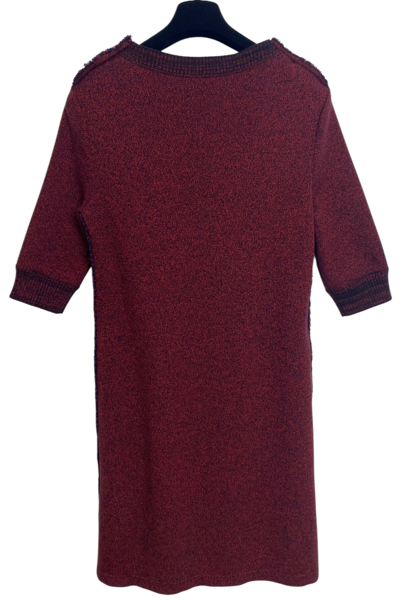 Chanel 2019 Burgundy Navy Wool Cashmere Tweed Trim CC Buttons Dress FR 40