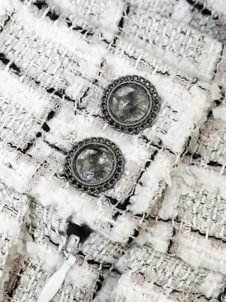 Chanel 22C Tweed Black, White, and Grey Check wide Pants