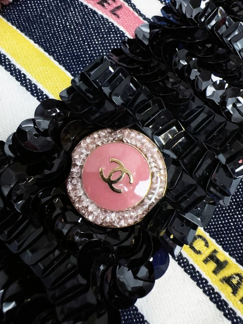 Stay ahead of the fashion curve with this stunning Chanel 22S dress. Designed for the Spring/Summer show, this colorful striped dress features a logo ribbon, sequin embroidery, and four pockets. In a size 38, this dress is basically new and ready to make a bold statement at your next event.