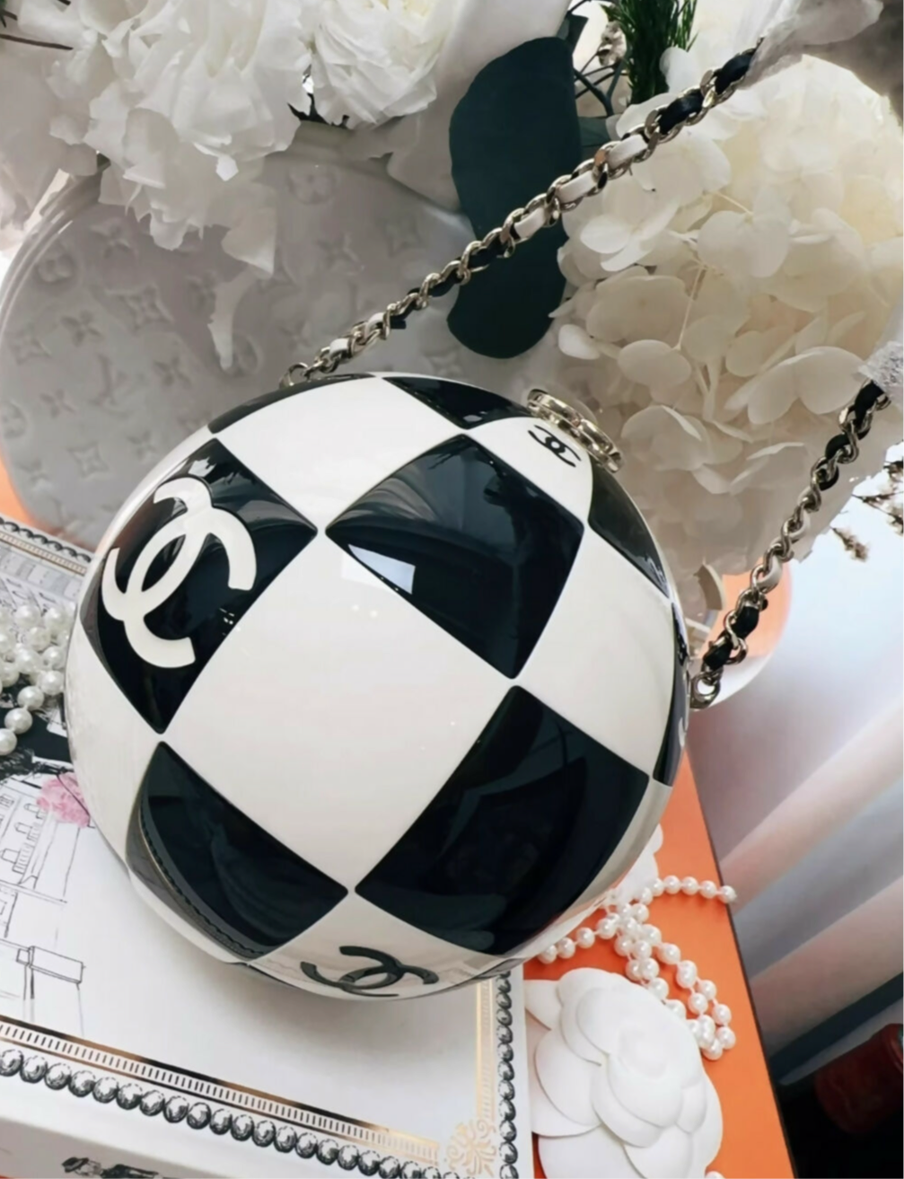 Chanel 23C Black and White Resin and Enamel Checker Sphere Minaudiere Pale Gold Hardware