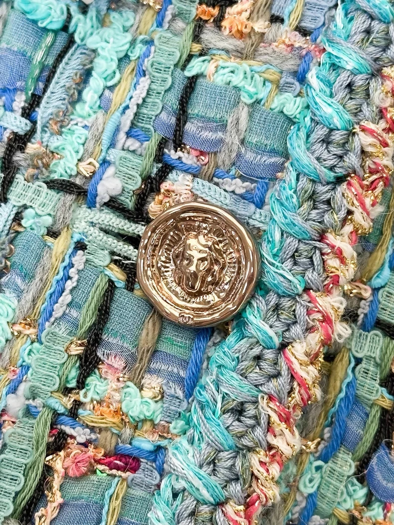 The Chanel 25A Métiers d'Art blue sequined tweed dress, sized 38, showcases exquisite craftsmanship synonymous with the brand. Constructed from high-quality tweed, this dress combines durability with elegance, making it suitable for both formal and semi-formal occasions. The sequined detailing enhances its visual appeal, ensuring a sophisticated aesthetic.
