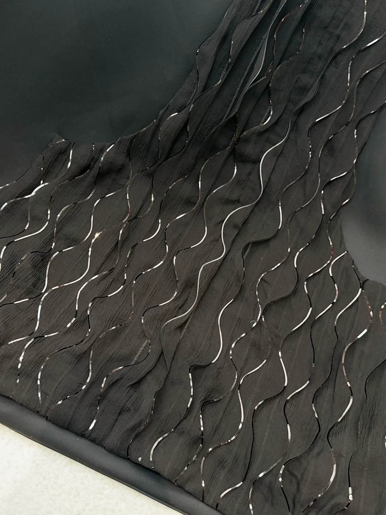 Introducing the timeless Chanel 25C black dress. Made from luxurious rippled silk, this sleeveless dress features a unique hooded design and elegant motif. Perfect for any occasion, this size 38 dress is a must-have for any fashion-forward wardrobe. Elevate your style with the brand new Early Spring Resort collection.