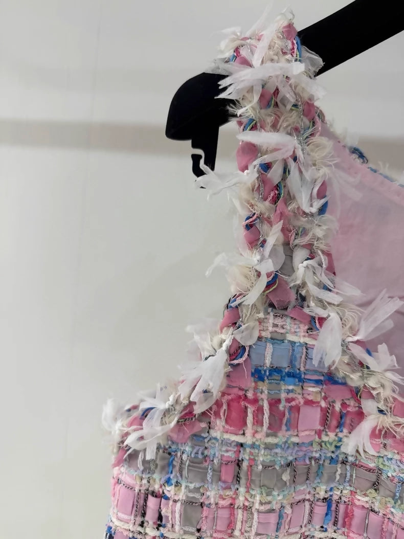 Chanel 25S Pink tweed Vest, brand new with tags, FR36, bust approximately 86cm, length 47cm, tweed fabric, exceptionally beautiful, enamel and rhinestone buttons showcasing exquisite craftsmanship.