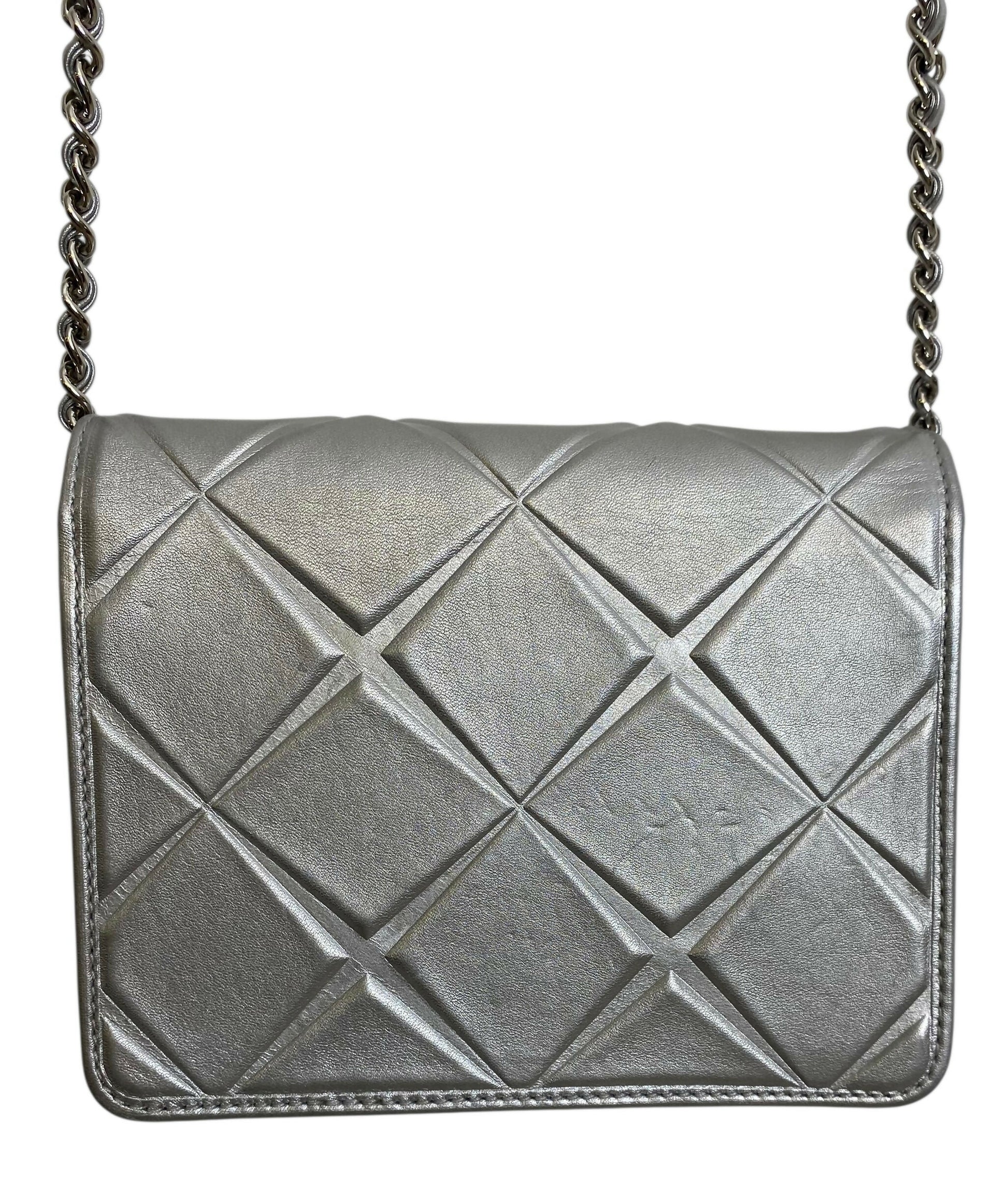 Chanel Airlines 16P Mini Propellor Metallic Calfskin Silver Flap Bag