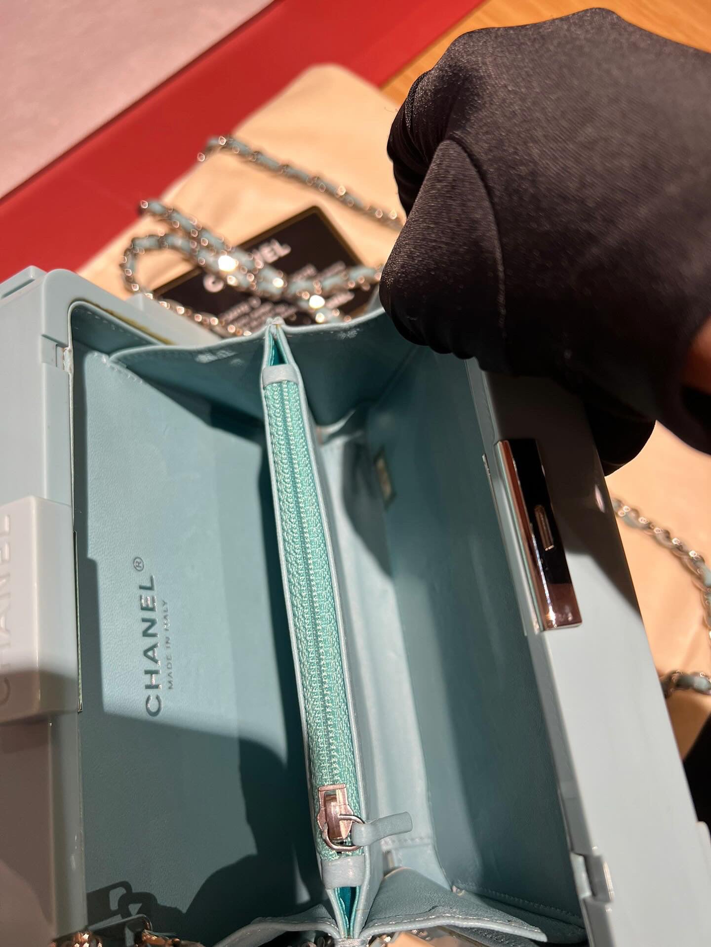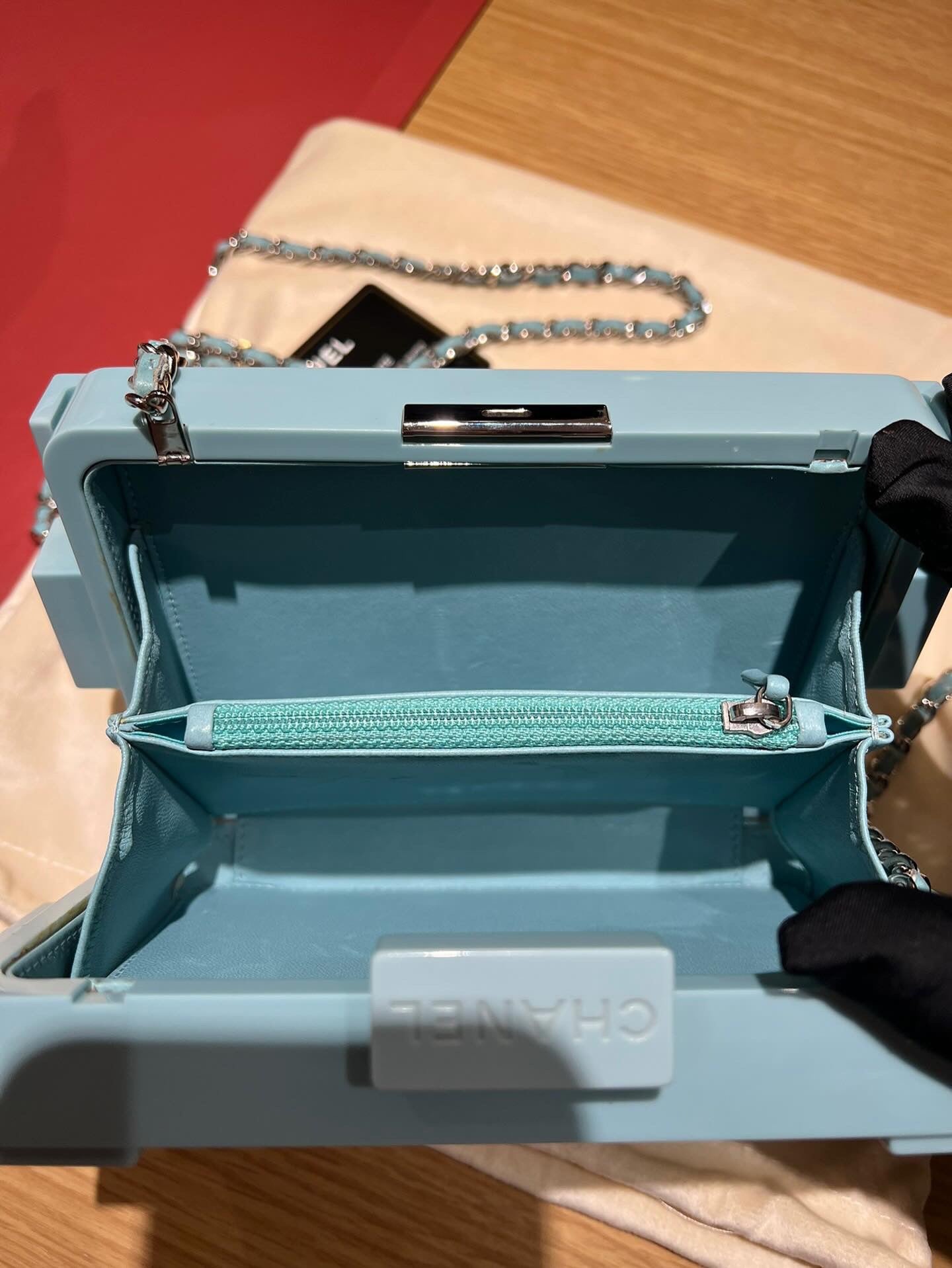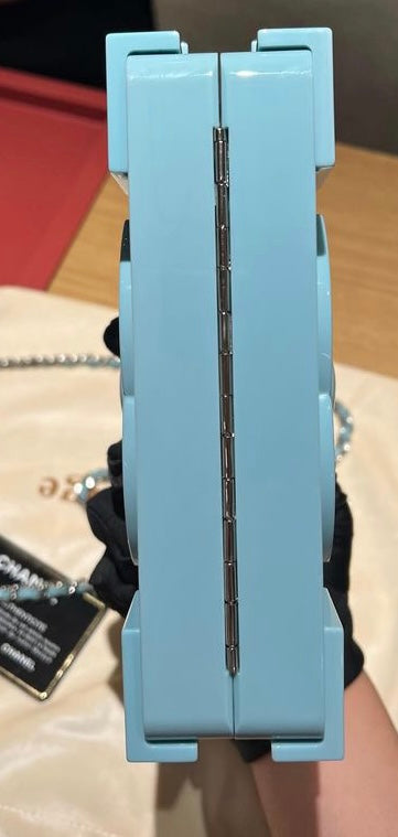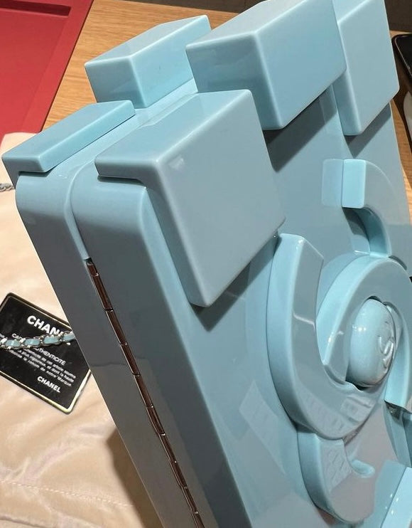CHANEL Baby Blue Lego Clutch very rare pristine condition