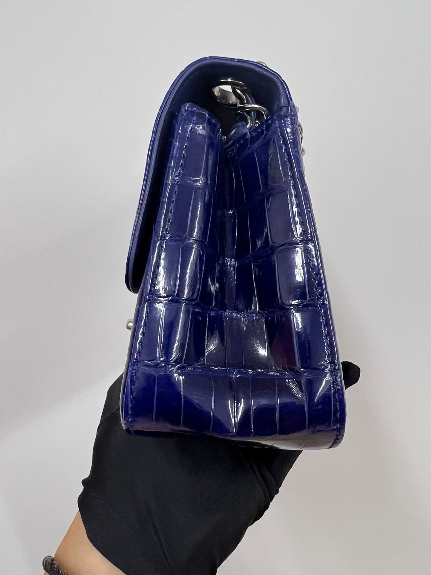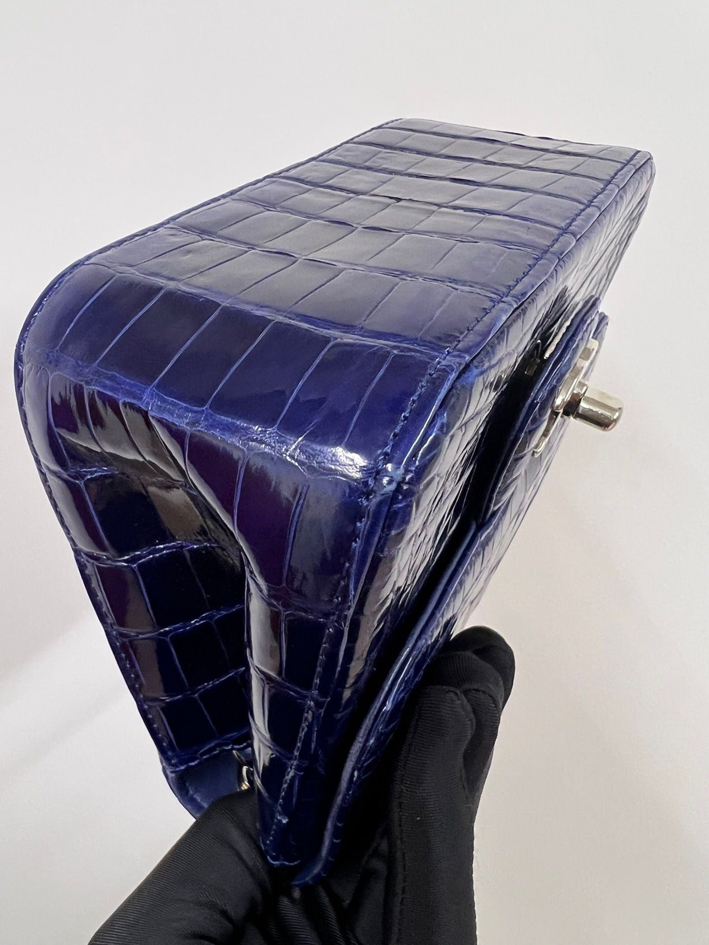 This Chanel Blue Alligator mini square Flap Bag is the epitome of luxury and exclusivity. Boasting a rare design and adorned with sleek silver hardware, this bag is a statement piece for any fashion-forward individual. Elevate your style and make a lasting impression with this stunning accessory.