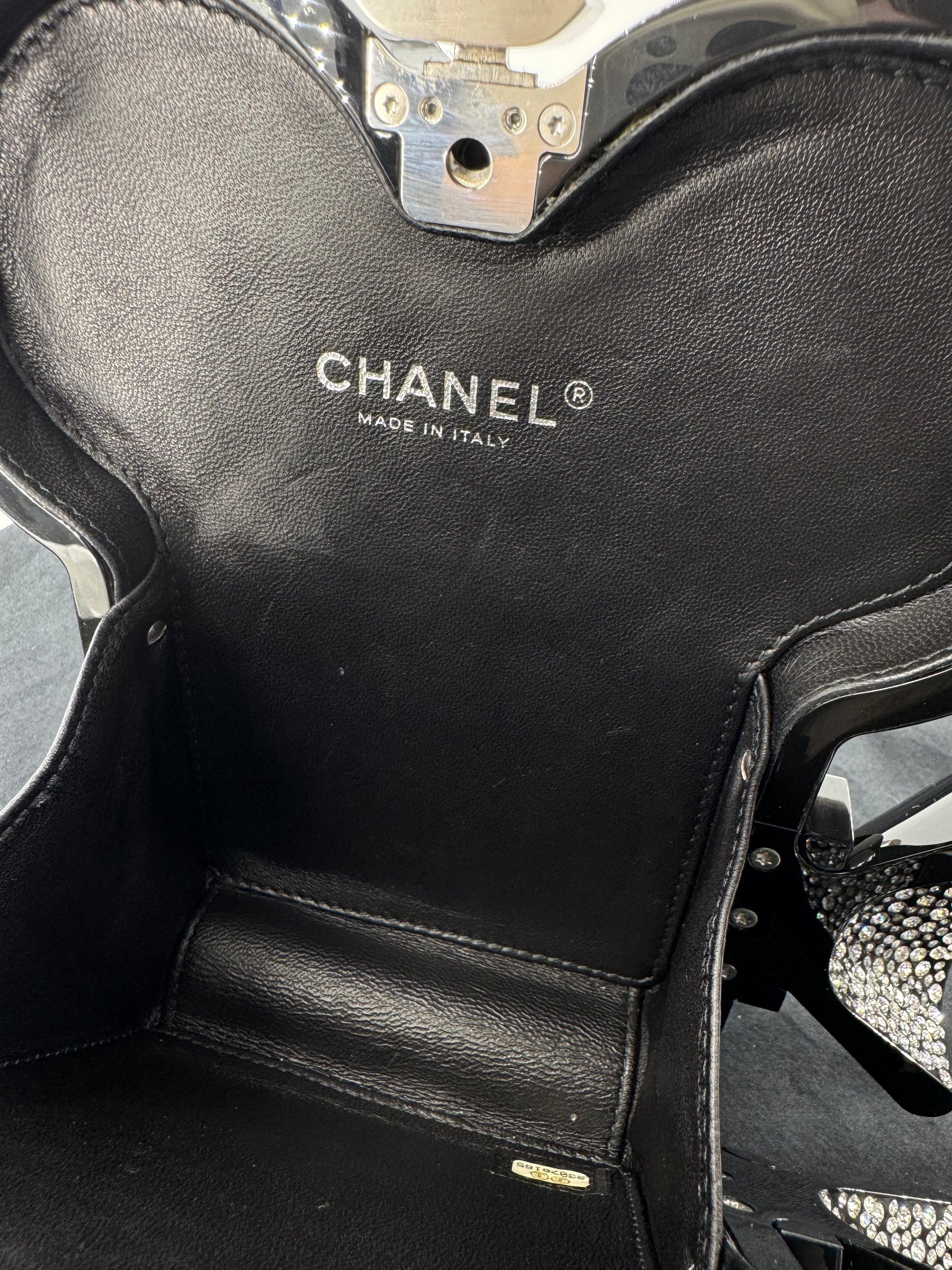 The piece’s technical artistry is unmistakable. Made from plexiglass or lucite, with leather lining and strap, and secured by a push‑clasp, it blends innovative materials with couture finishing. Specialist dealers describe it as rare—even among Chanel’s famed novelty bags—positioning it as a must‑have for serious collectors and museum‑level archives.