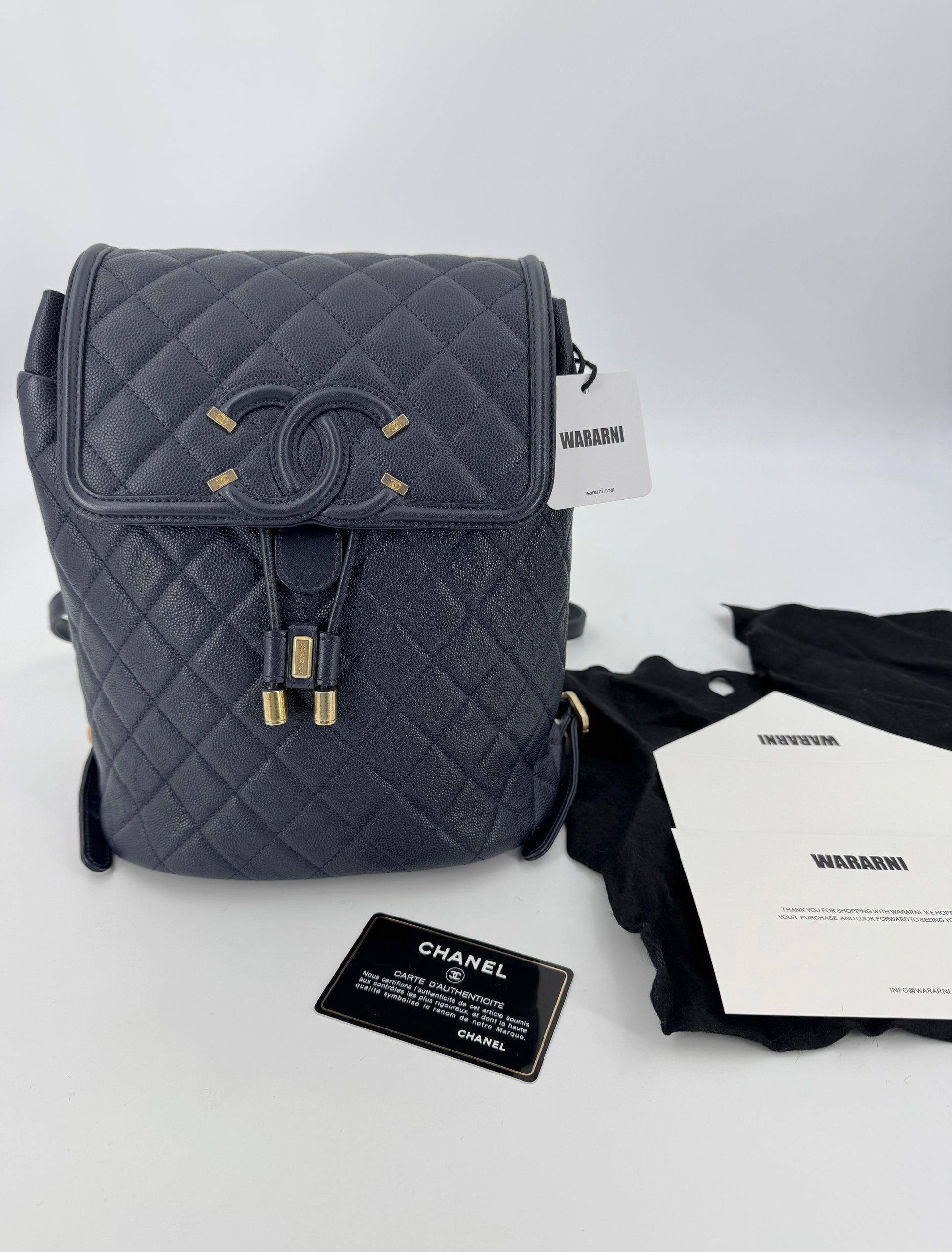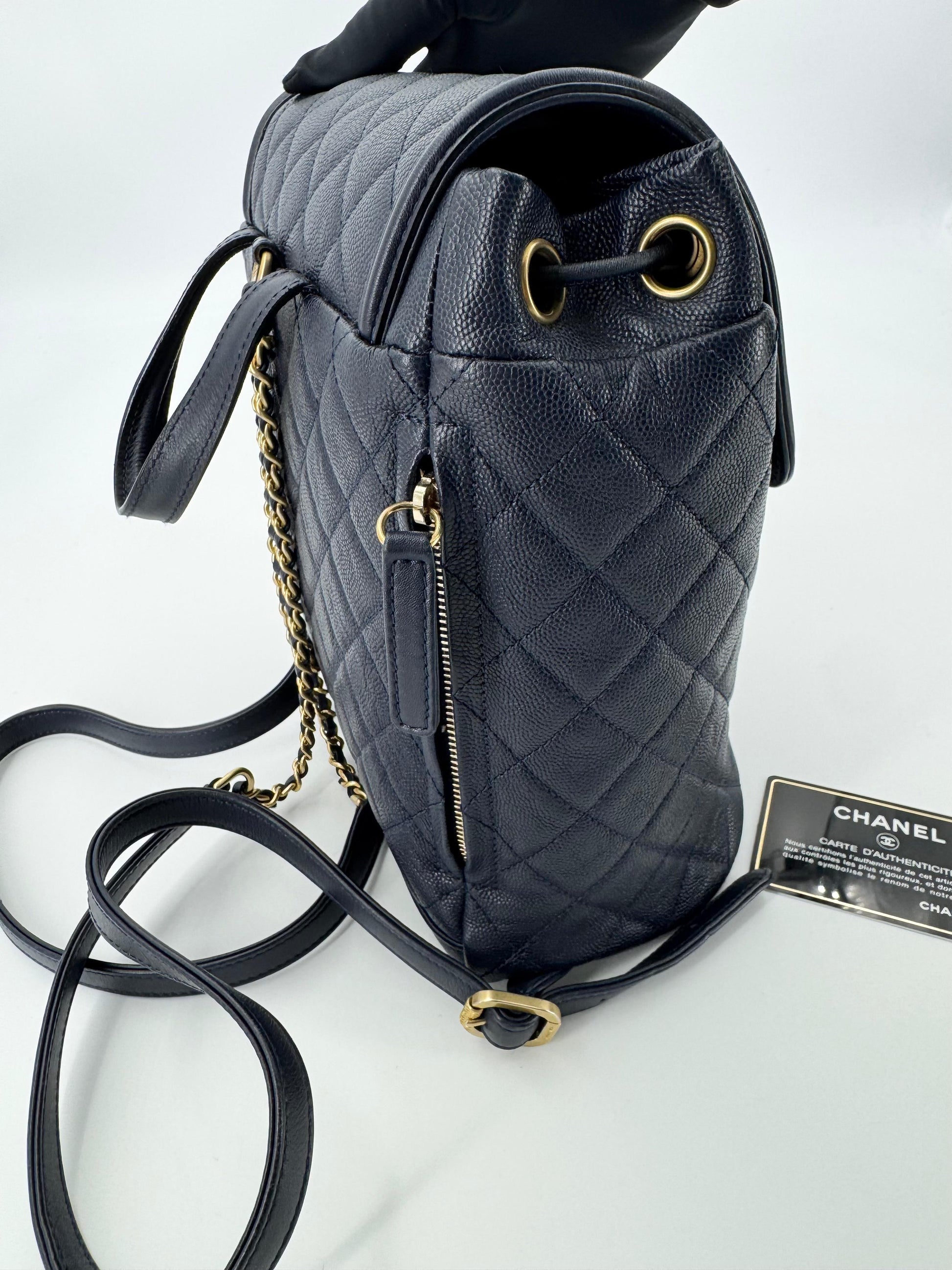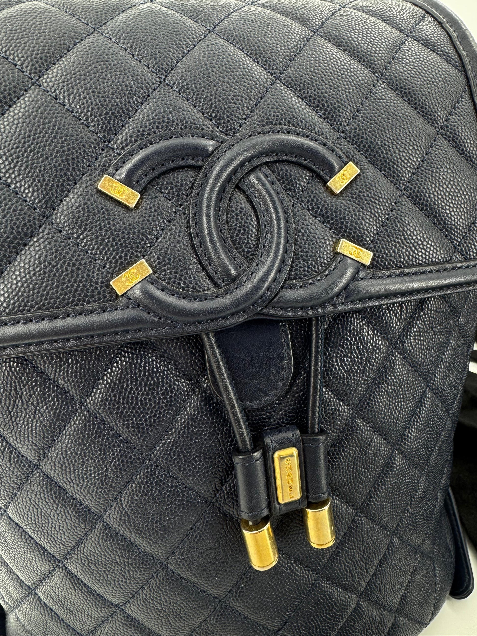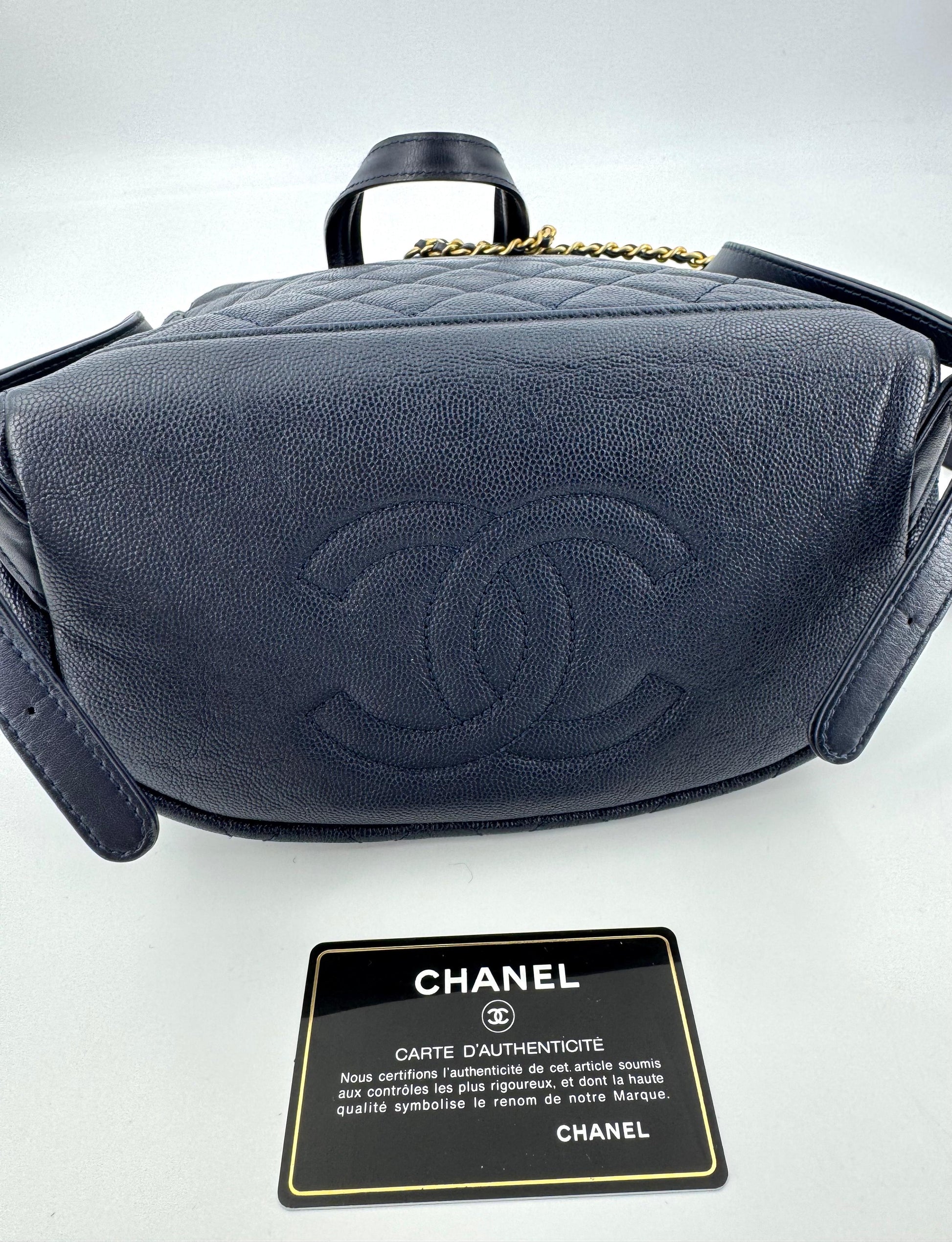 Chanel Dark Blue leather backpack with gold hardware