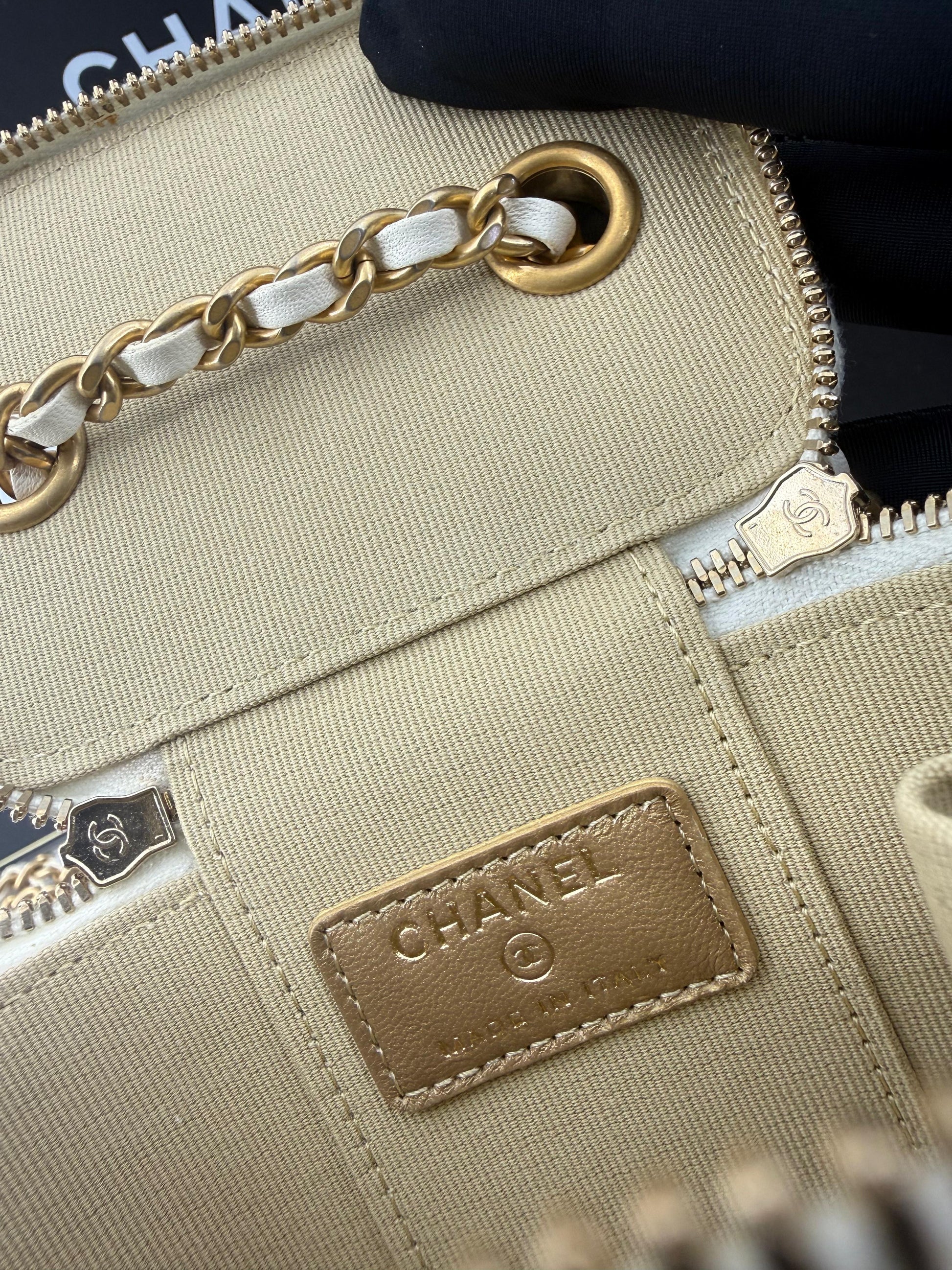 Chanel ecru mini vanity case gold chain hardware