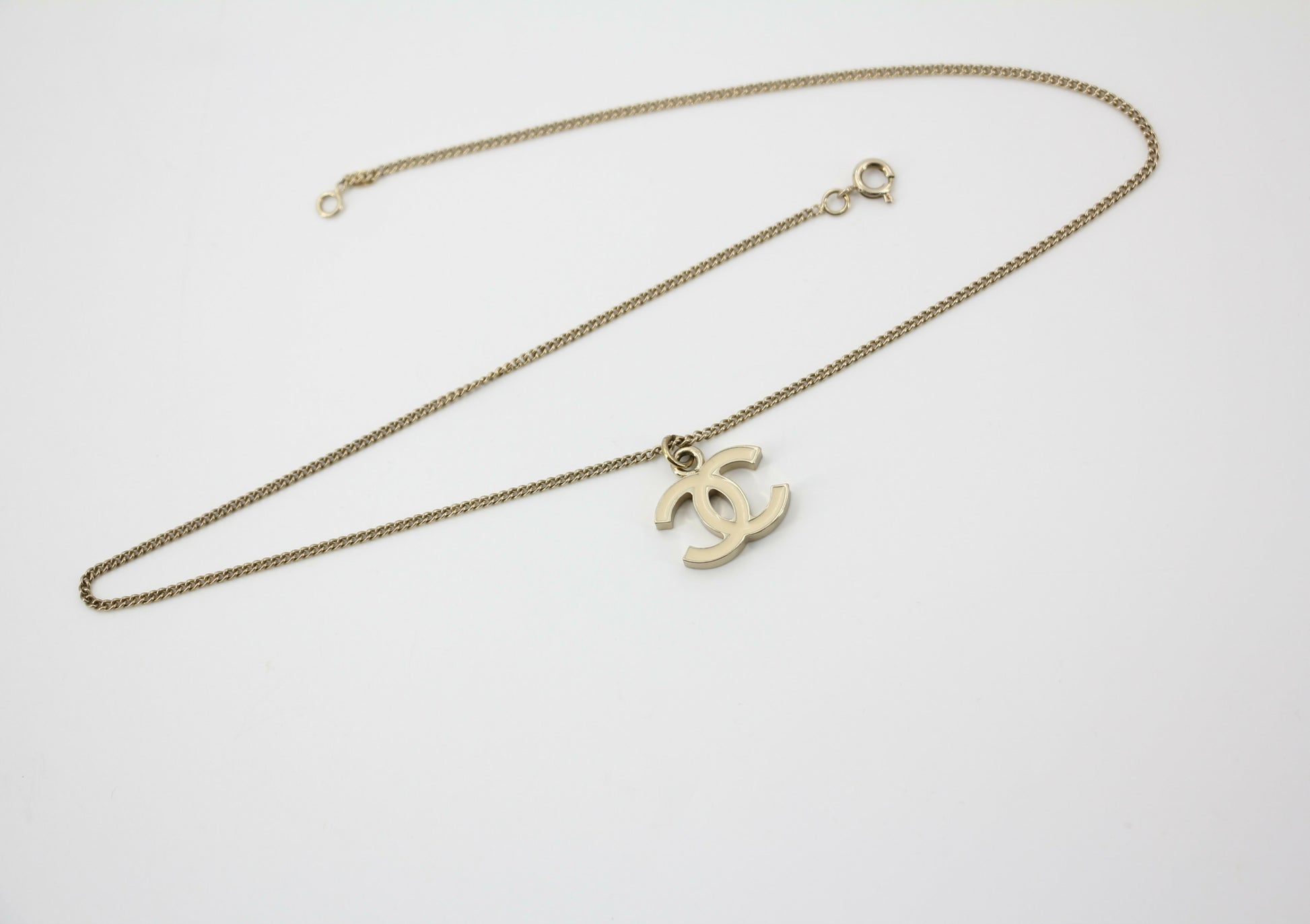 Chanel Vintage 04V Enamel Classic White CC Light Gold Necklace