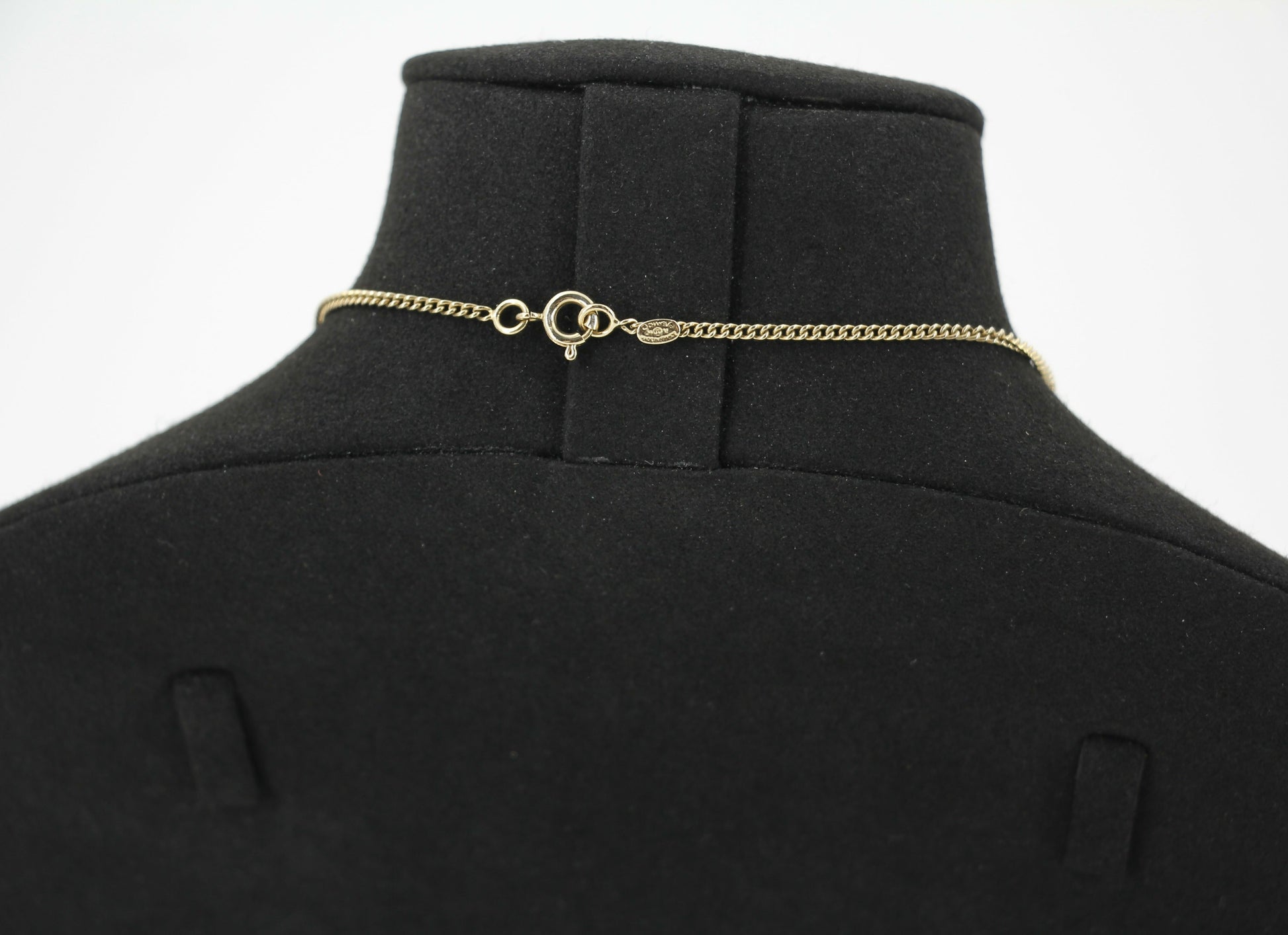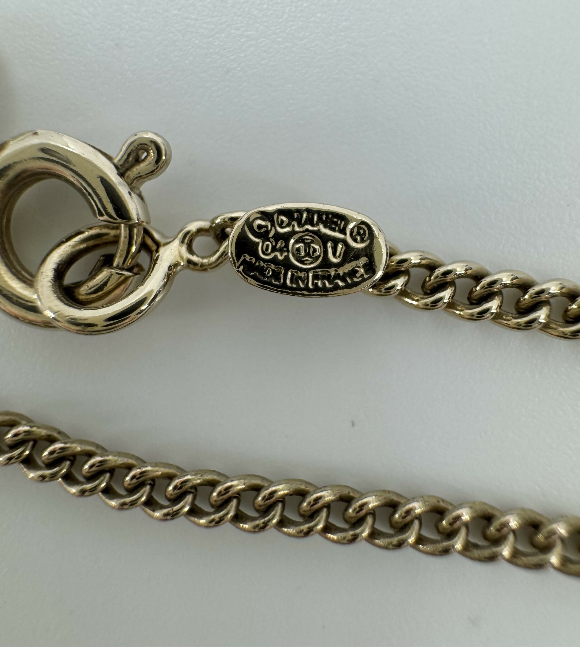 This Chanel Vintage 04V Enamel Classic White CC Light Gold Necklace is a timeless piece of jewelry that exudes elegance and sophistication. The vintage design and high-quality enamel add a touch of nostalgia, while the light gold CC logo adds a touch of modernity. Perfect for any occasion, this necklace will elevate any outfit.