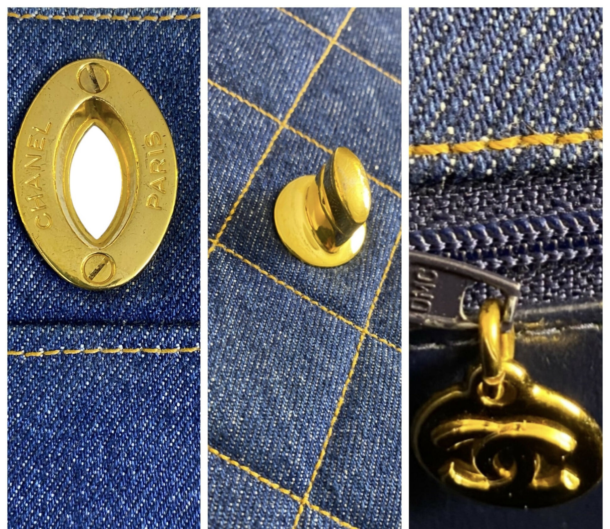 Gorgeous Blue Denim Top handle with 24 K gold plated big CC Turn Lock.