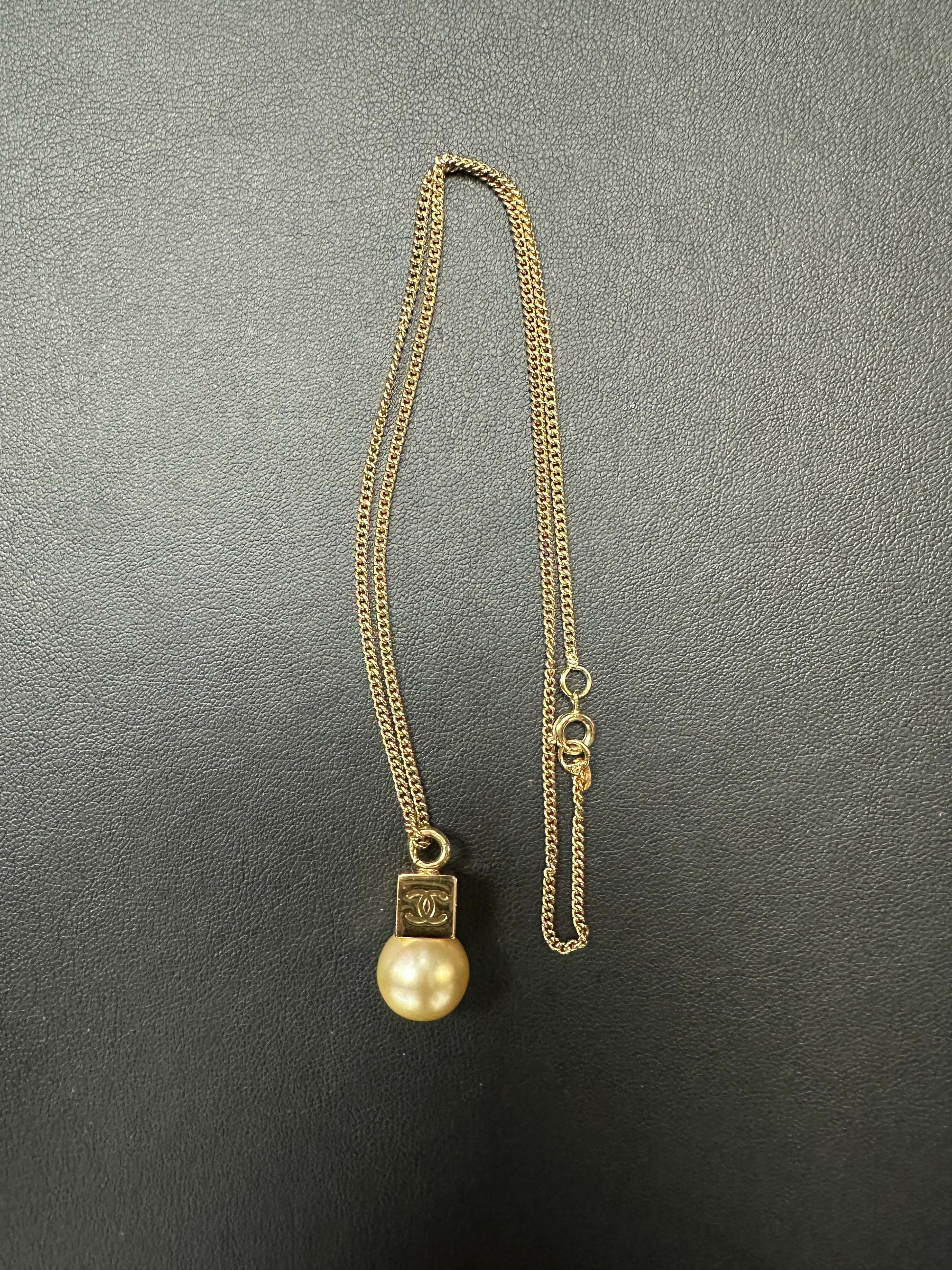 Chanel Vintage 2002 Imitation Pearl Metal Pendant Necklace
