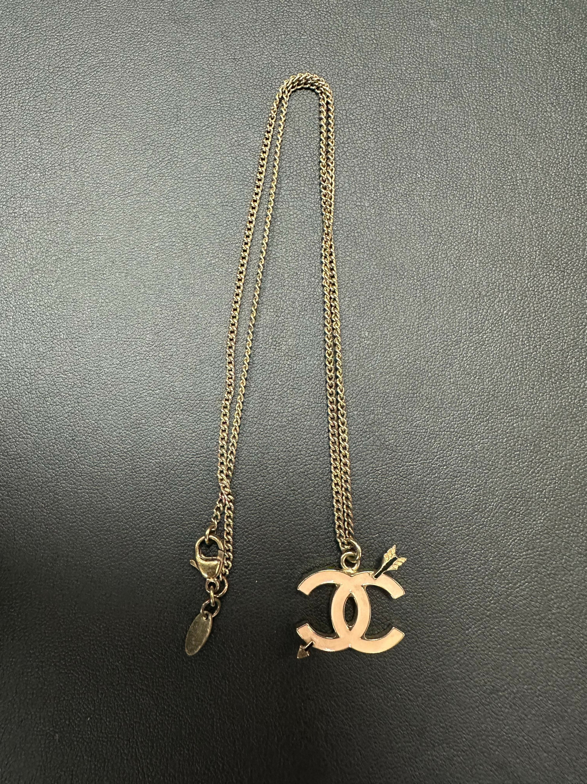 Chanel Vintage 2010 Enamel Light Orange CC Gold Tone Necklace