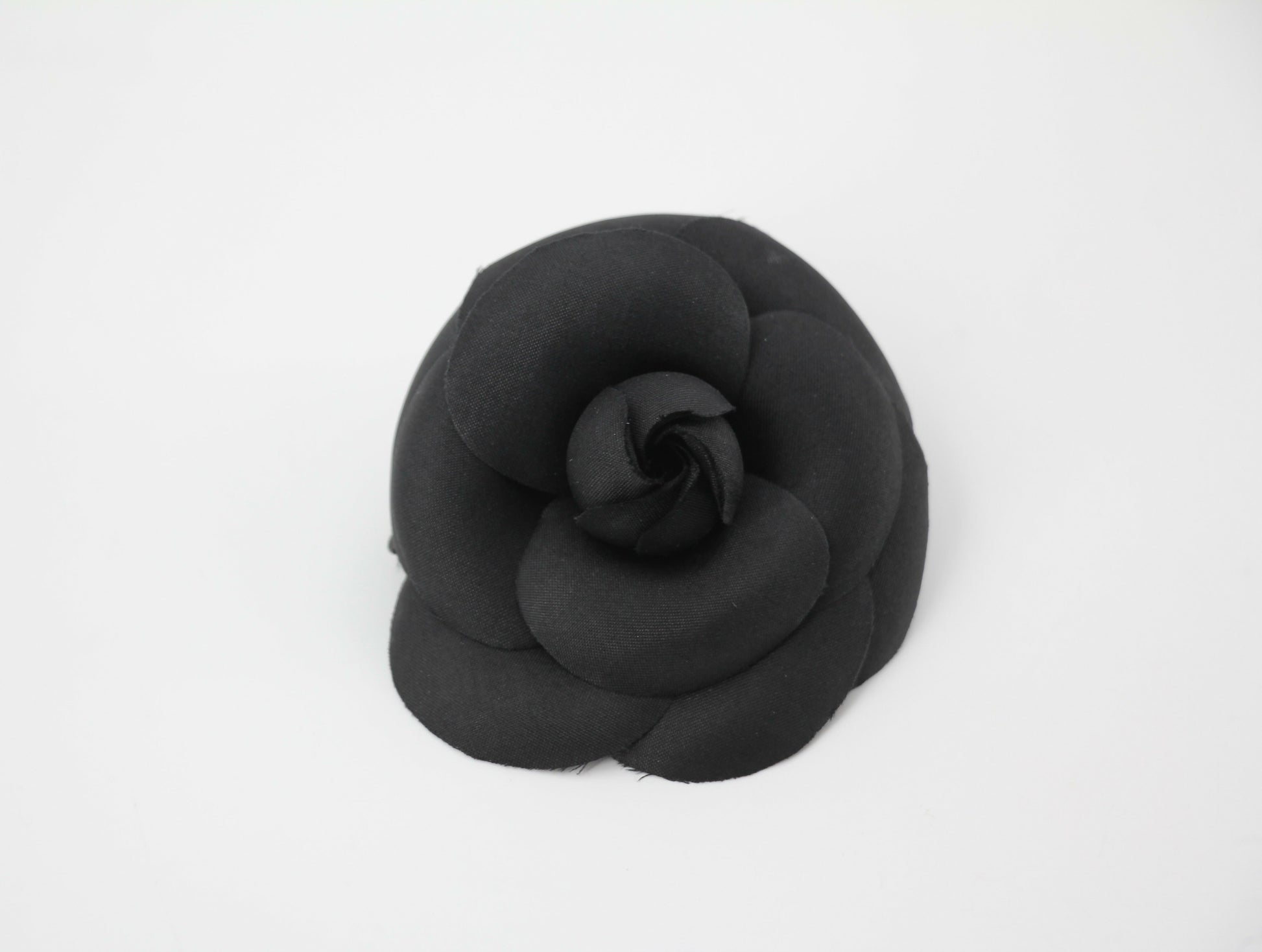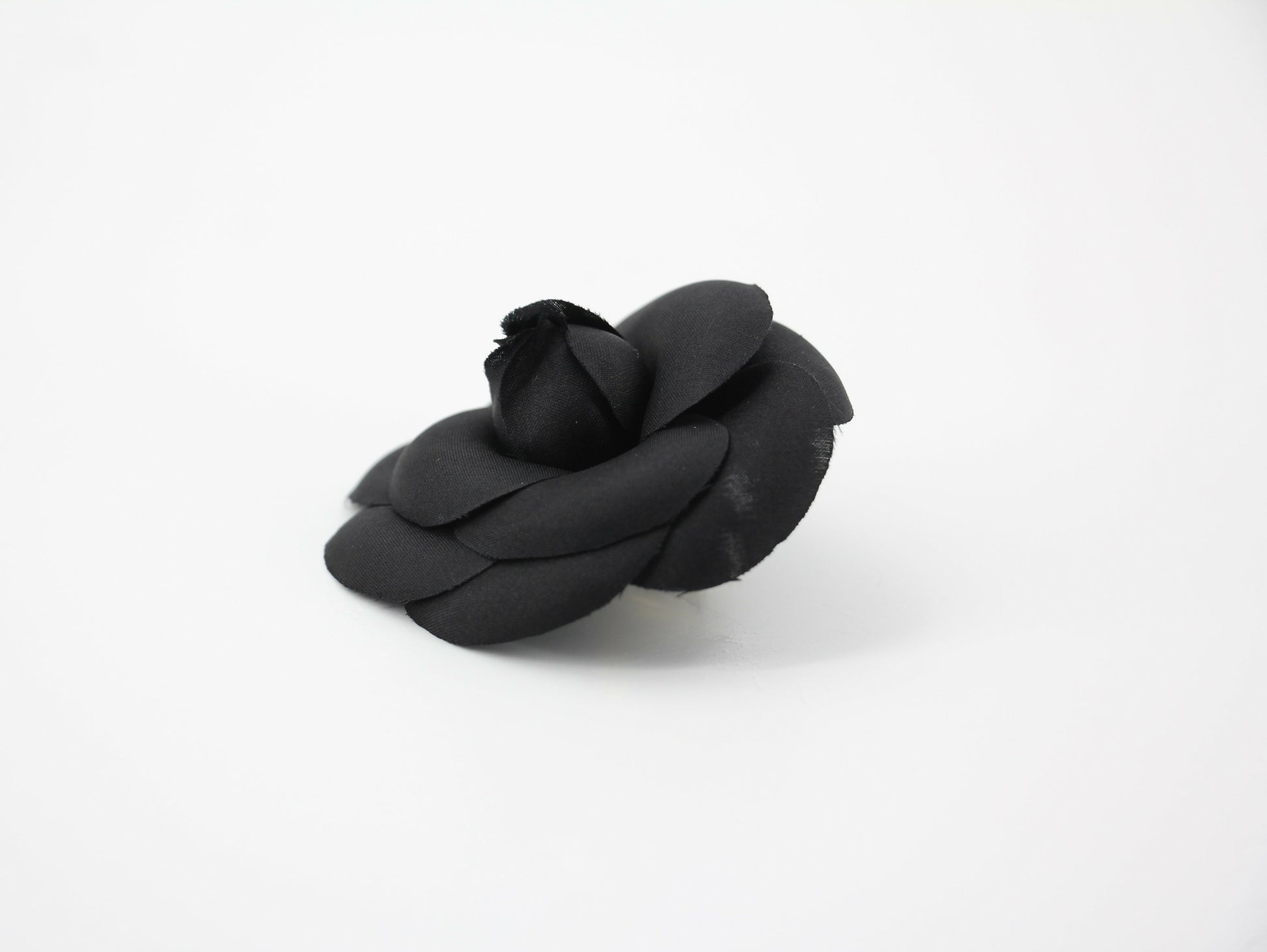 Chanel Vintage 81-85 Silk Black Camellia Brooch