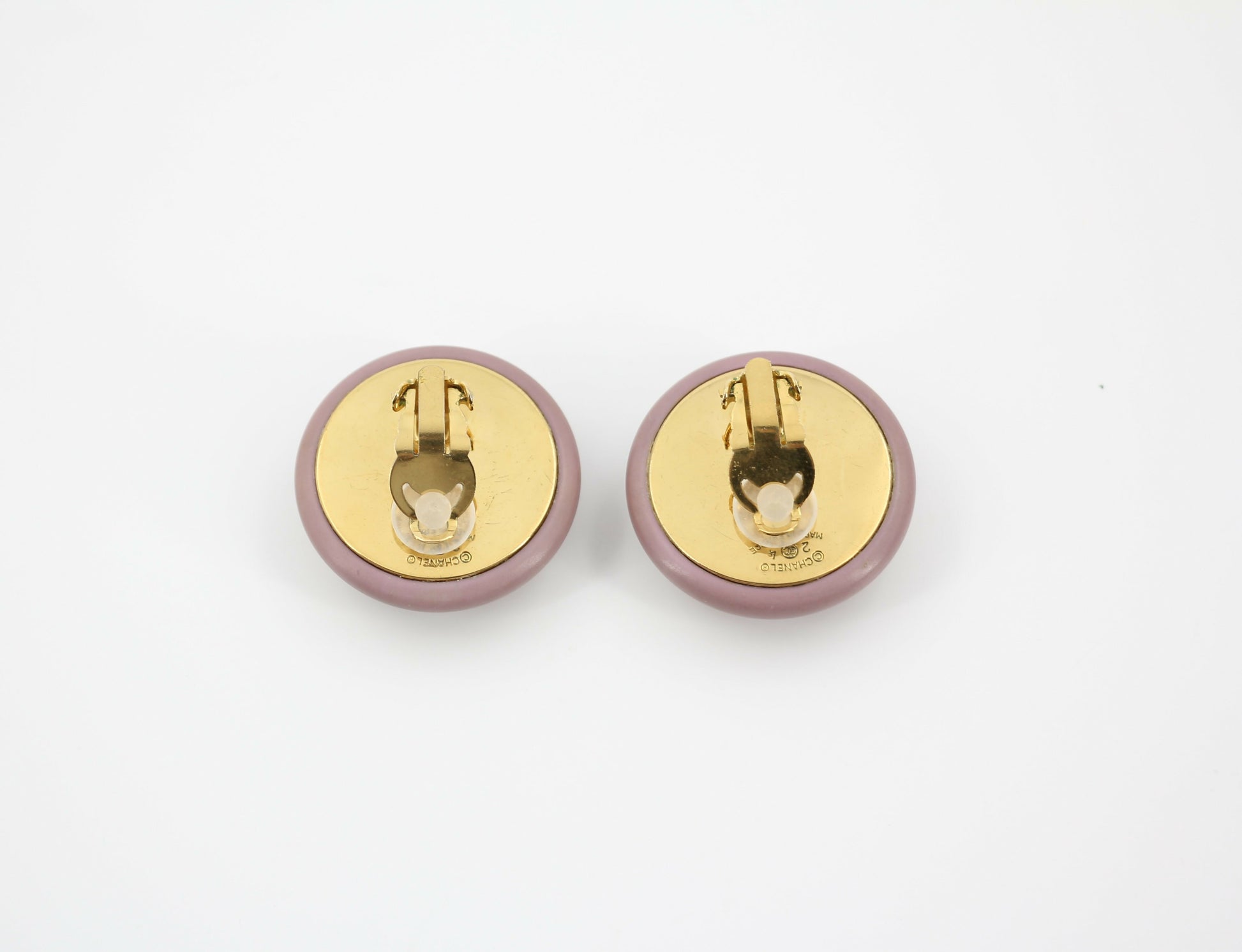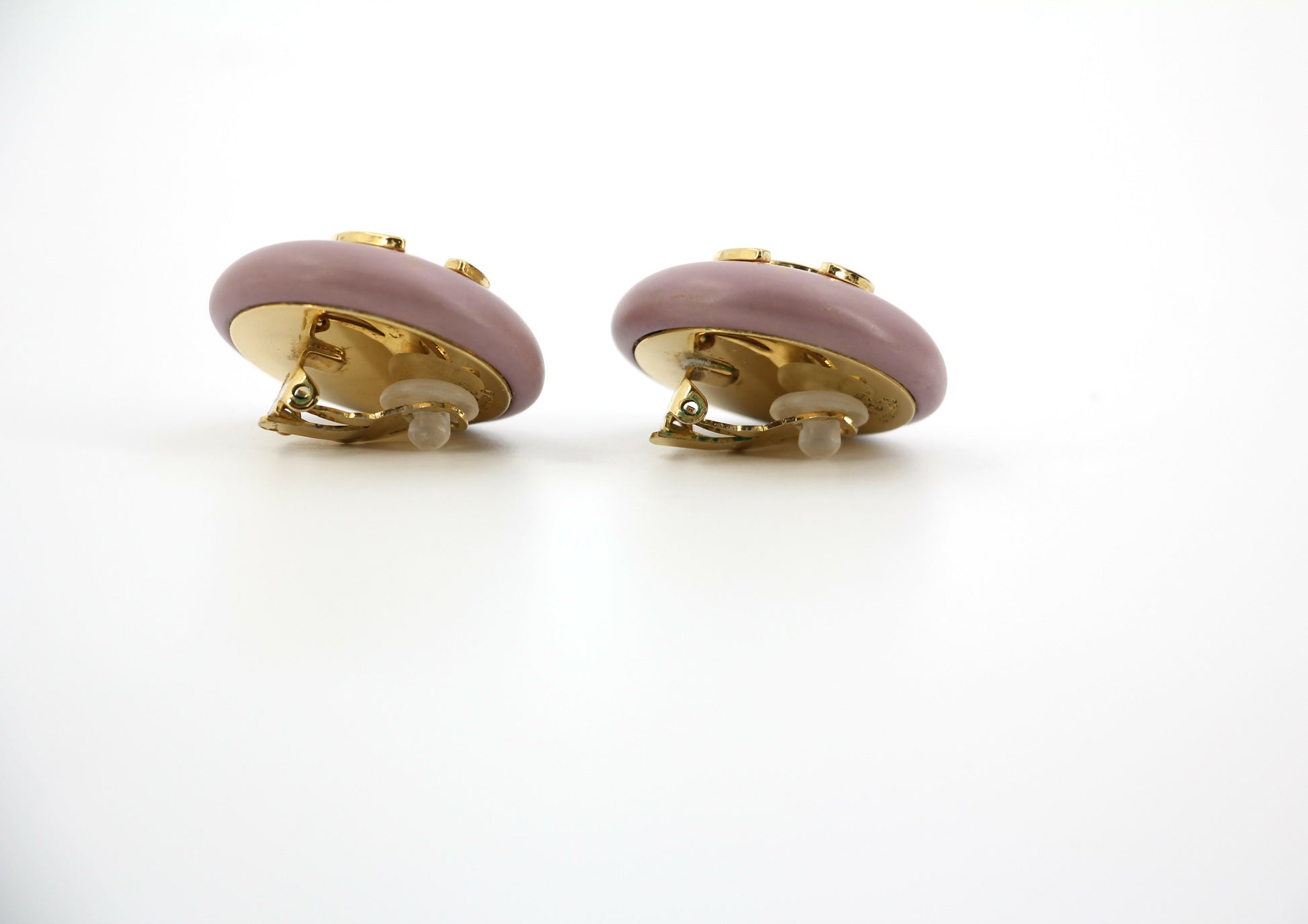 Chanel Vintage 87 Resin Purple Pink CC Logo Large Round Clip-on Earrings