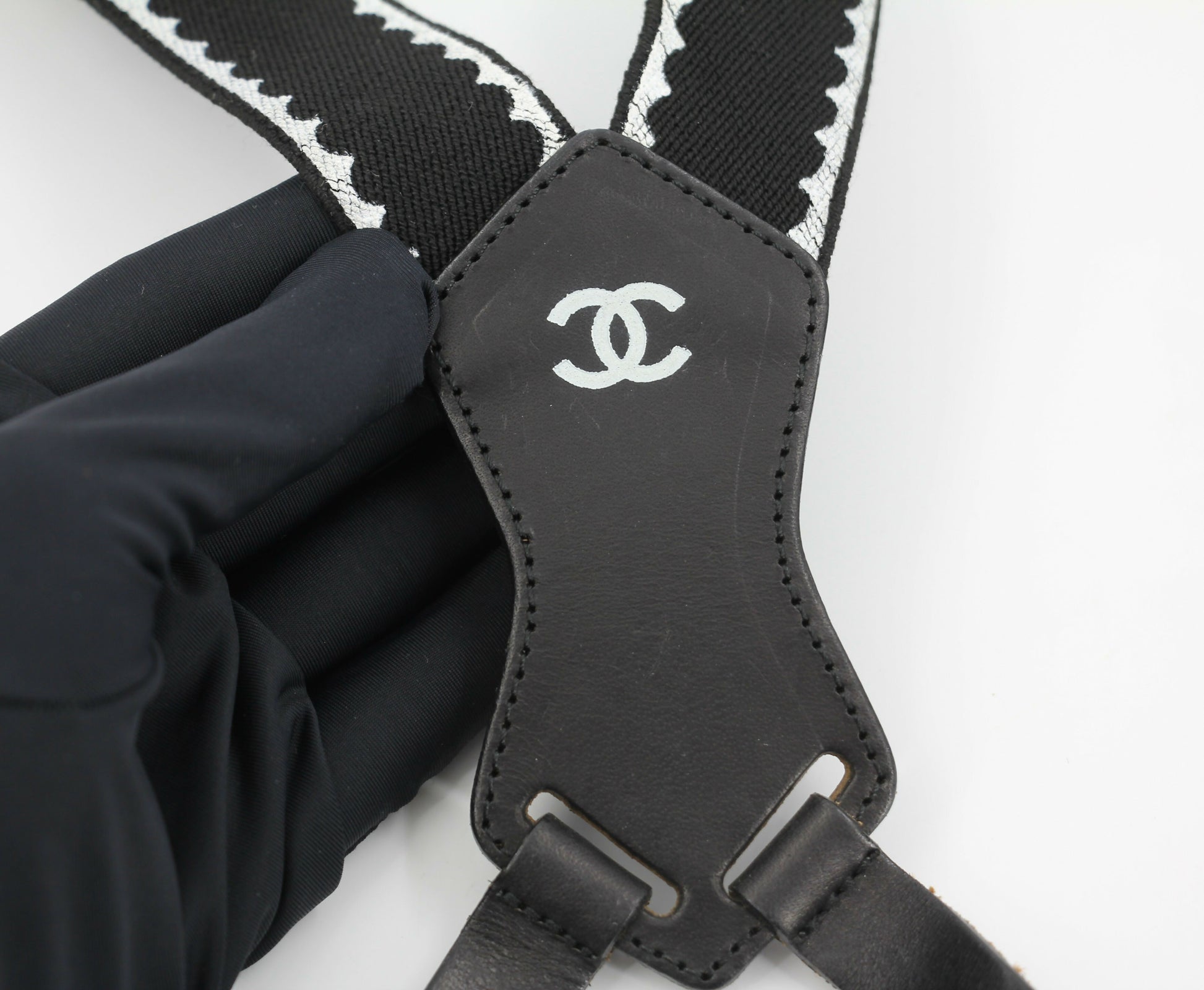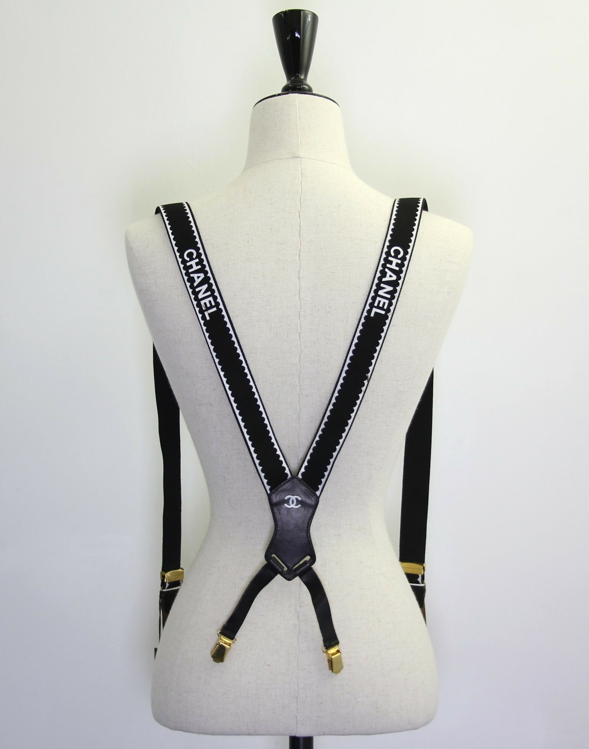 Chanel Vintage 94P Leather & Canvas Coco Mark Suspenders in Black with Gold Hardware