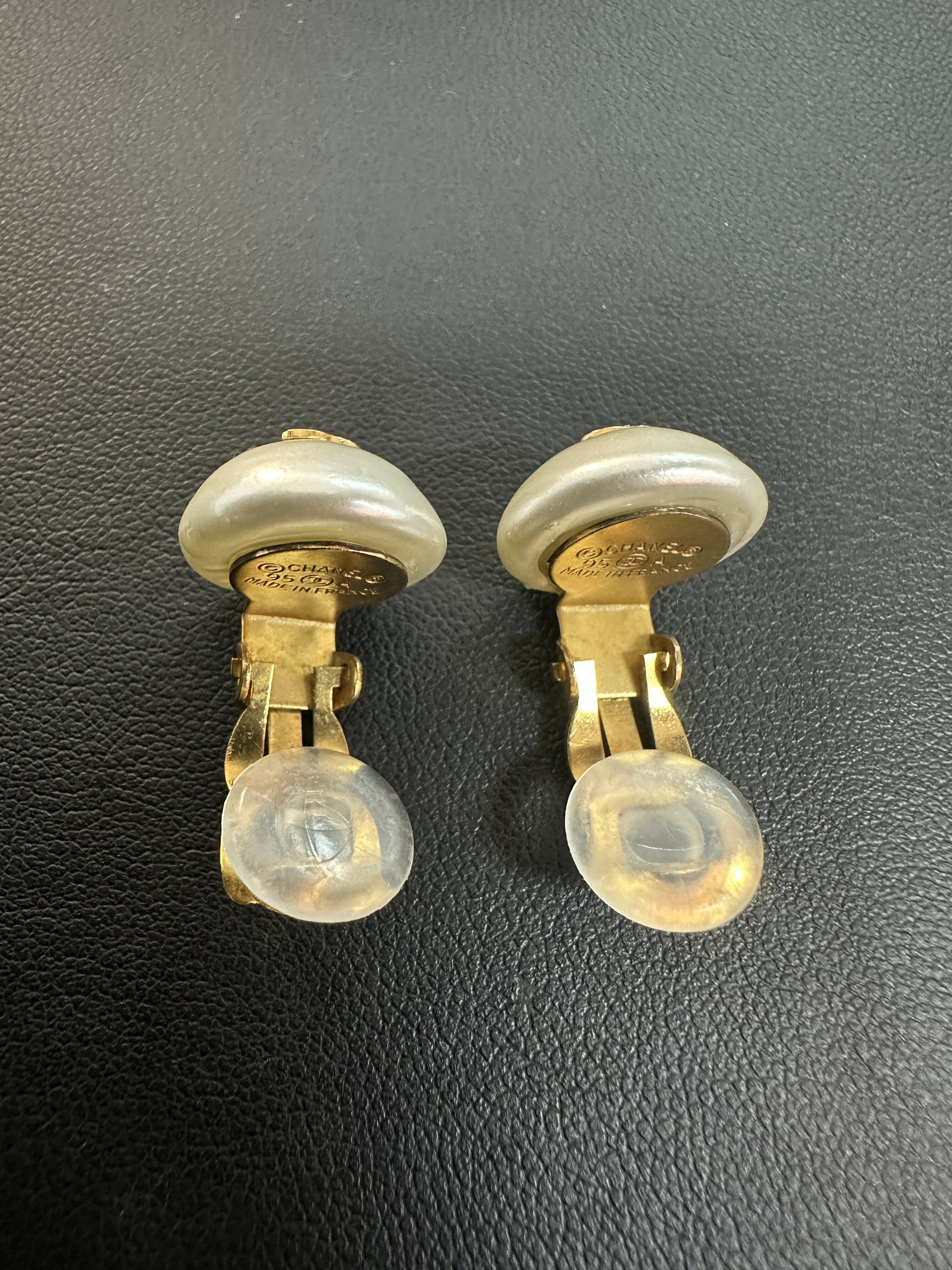 Chanel Vintage 95A Imitation Pearl White Round Clip-On Earrings