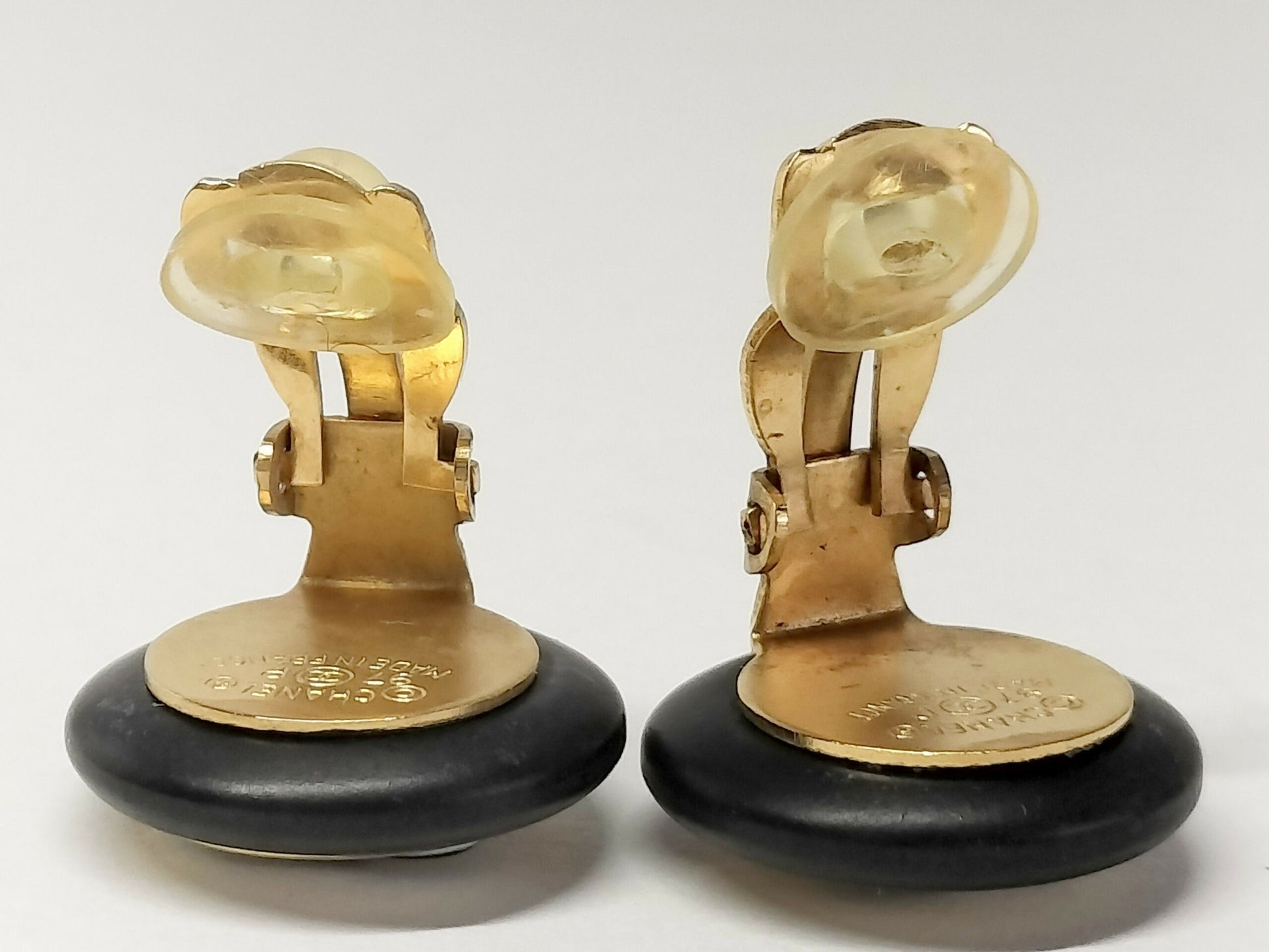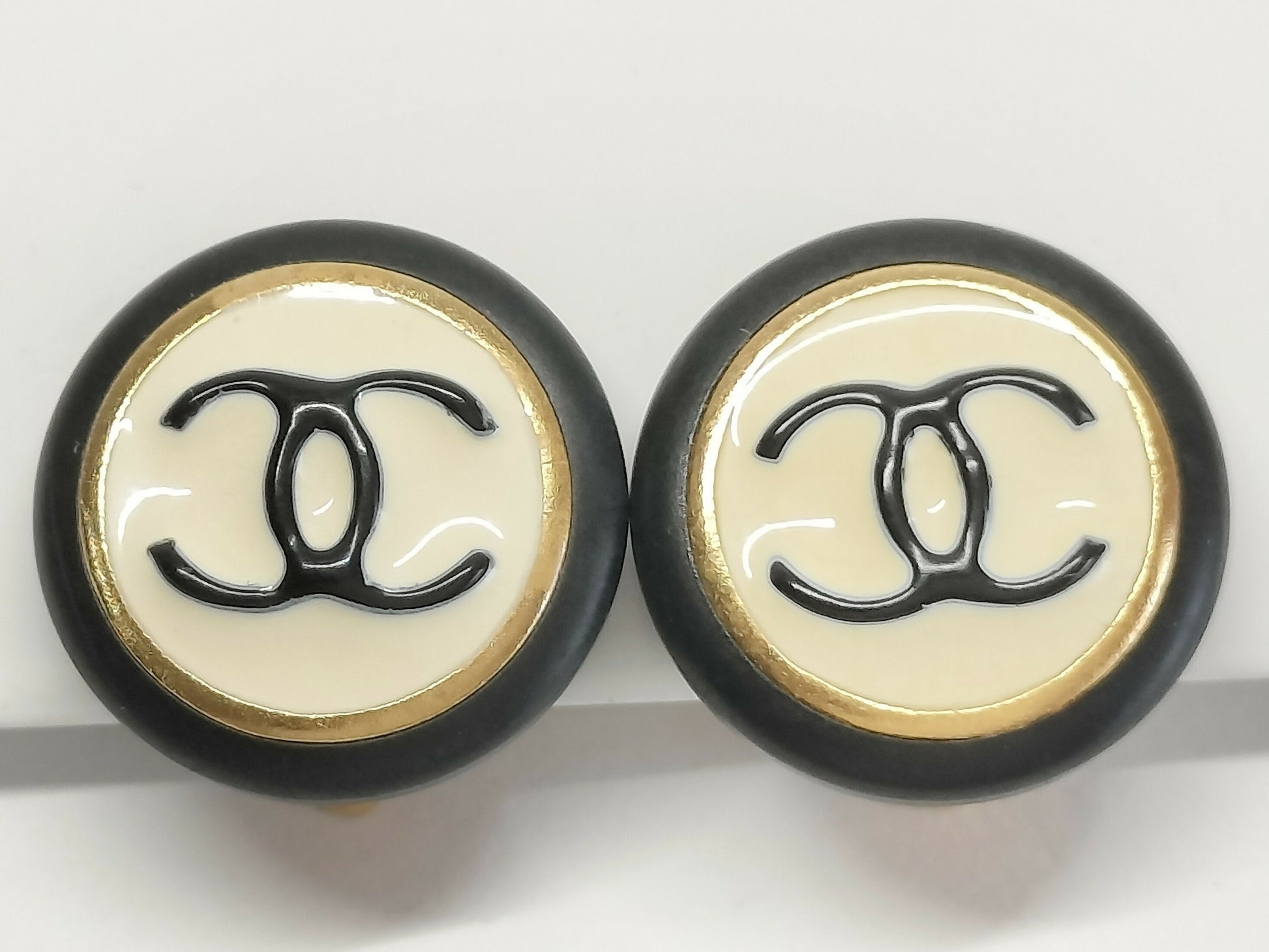 Chanel Vintage 97P Enamel Black & White Round Bean Clip-on Earrings