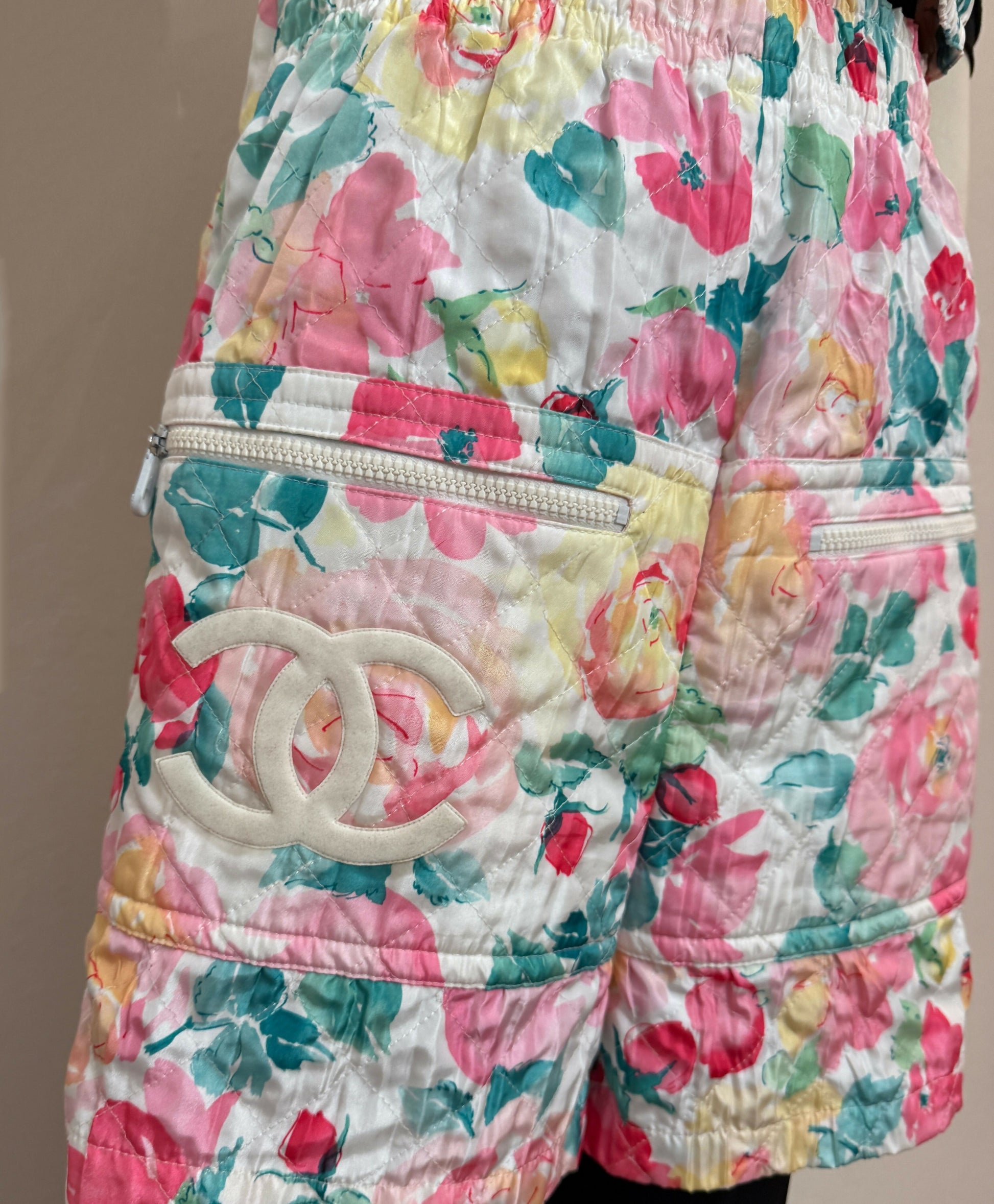 Chanel 1994 Cruise Vintage Multicolor Quilted Floral Print Sleeveless Vest and Shorts Set