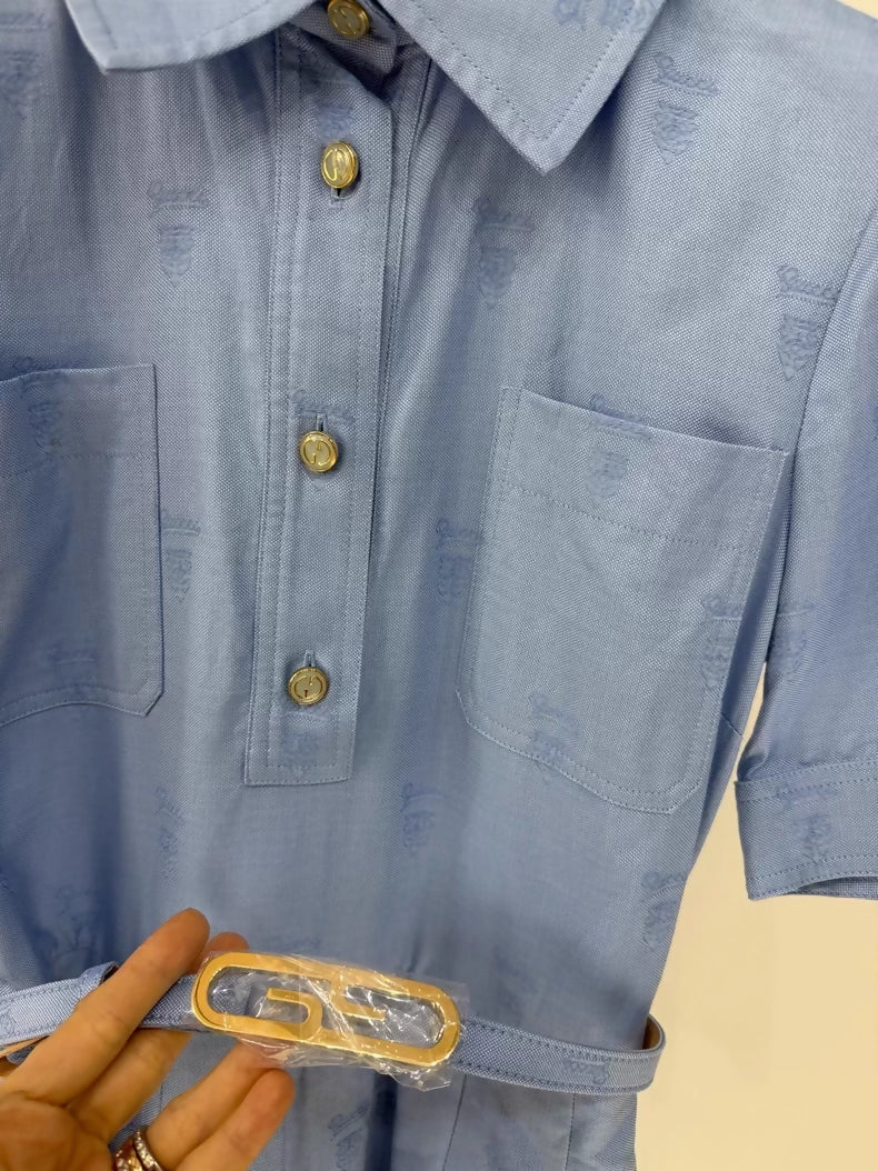Gucci 2024 logo pleated print dress with belt, brand new (tag removed), size 36 (approximately 84cm bust, 62cm waist, 110cm length), a gentle and elegant style.