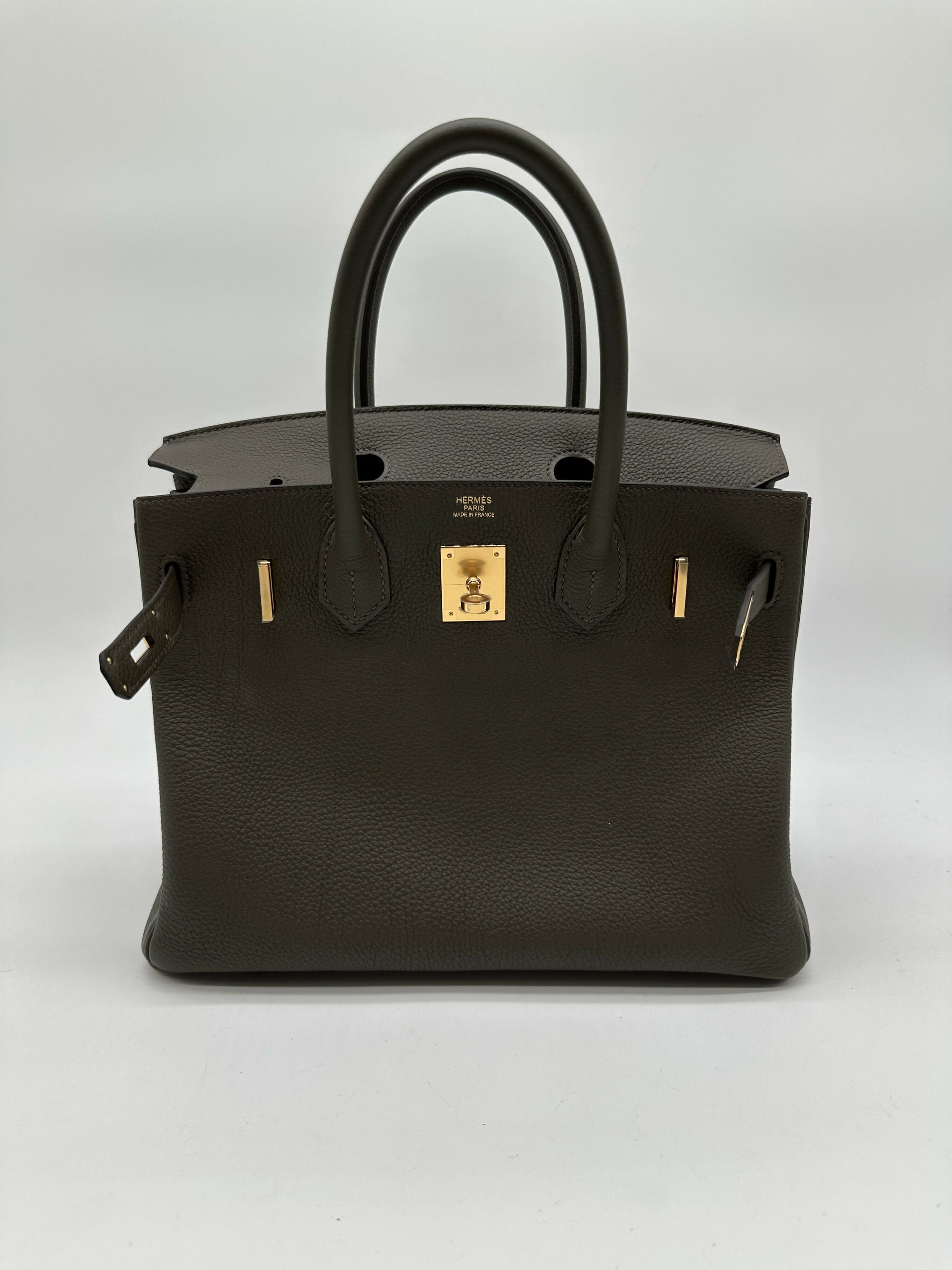 The Hermès Birkin 30 in Eucalyptus Togo with gold hardware, stamp B, is a sophisticated and versatile piece crafted in the house’s durable grained Togo leather. The elegant eucalyptus green shade offers a refined alternative to classic neutrals, beautifully enriched by the warm glow of gold hardware, while the 30 cm size strikes the perfect balance between practicality and timeless luxury.