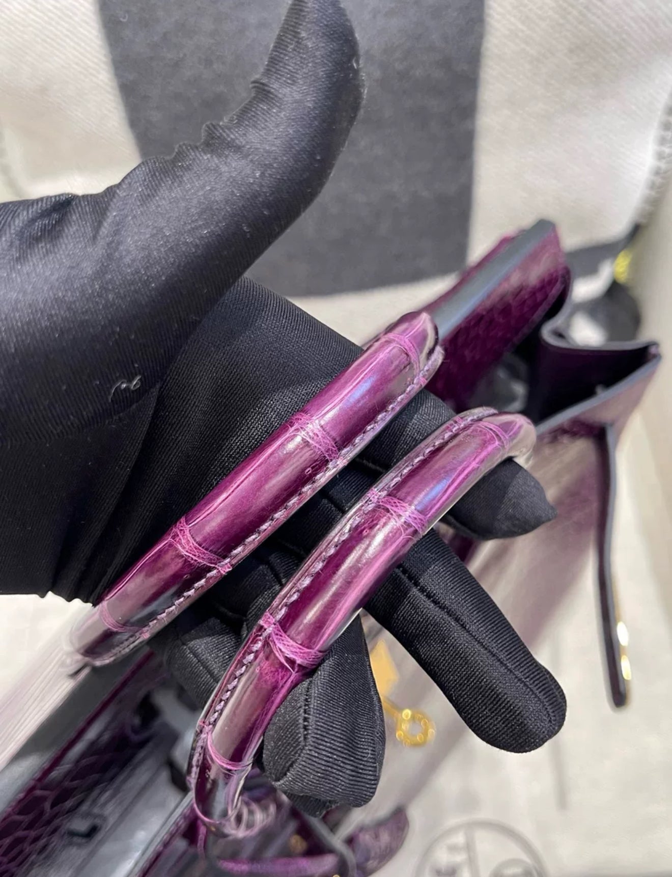 With its iconic design and high-quality craftsmanship, the Hermès Birkin 35 N5 Cassis Violet shiny crocodile gold Hardware is a must-have for any luxury bag collector. Its rare cassis violet color and shiny crocodile material give it a unique and luxurious look, while the gold hardware adds a touch of elegance. In excellent new condition, this bag is perfect for making a statement and elevating any outfit.