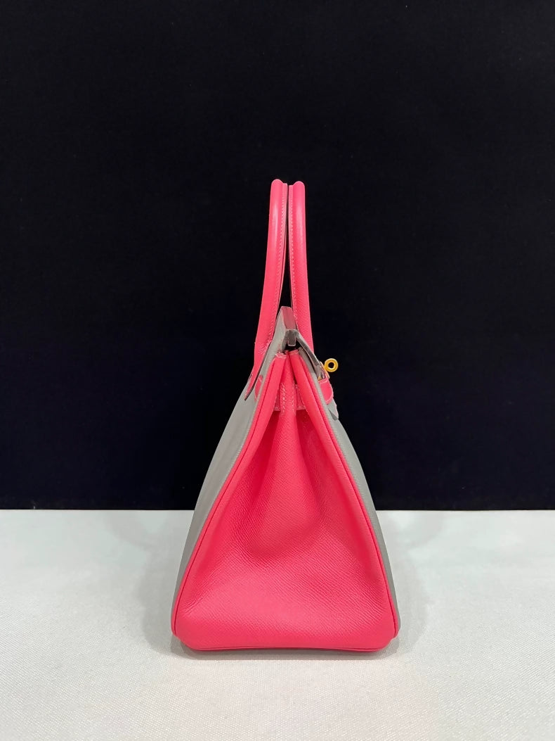 Hermes Birkin 30 Pink/Grey Epsom leather brushed gold hardware