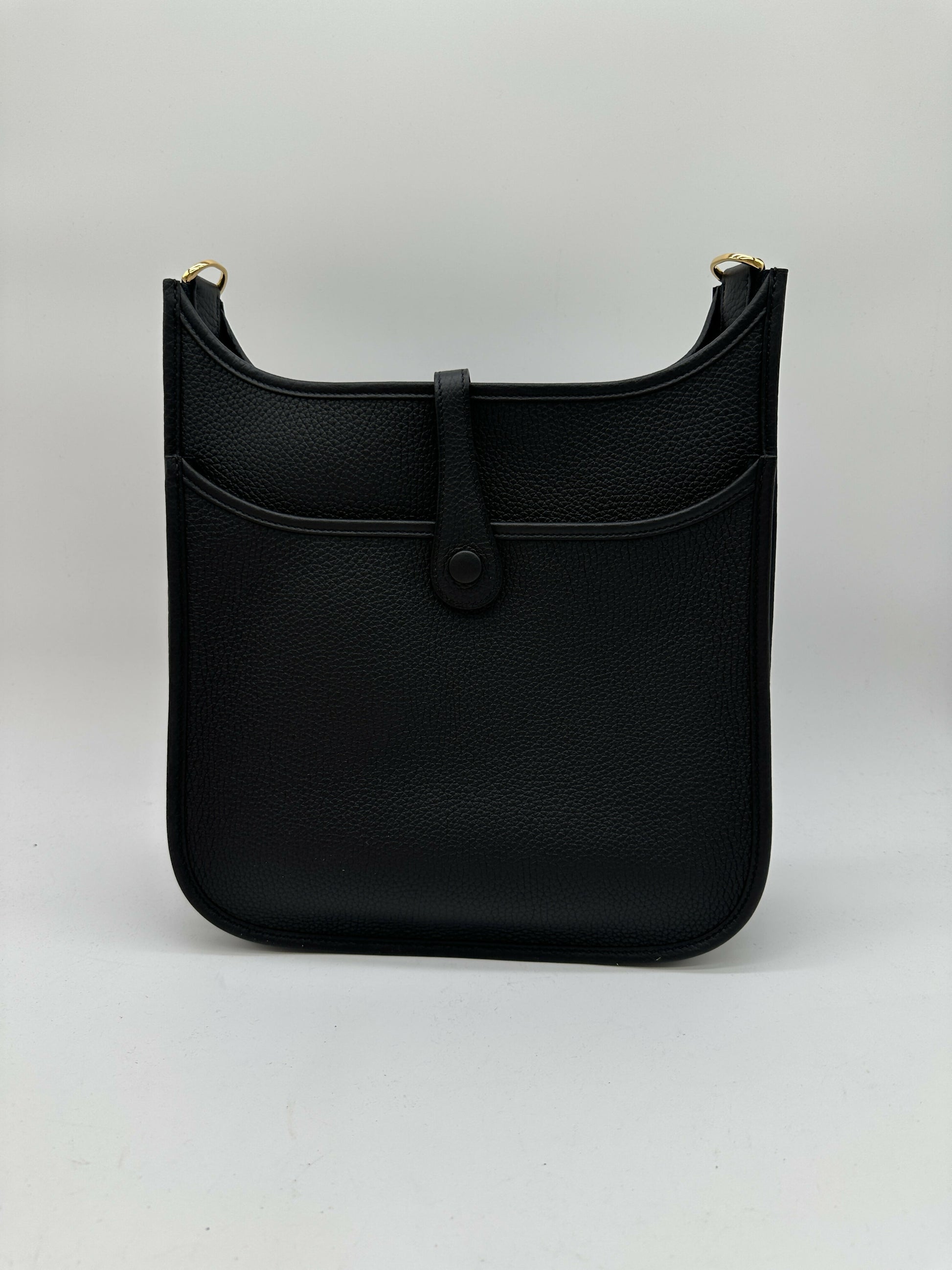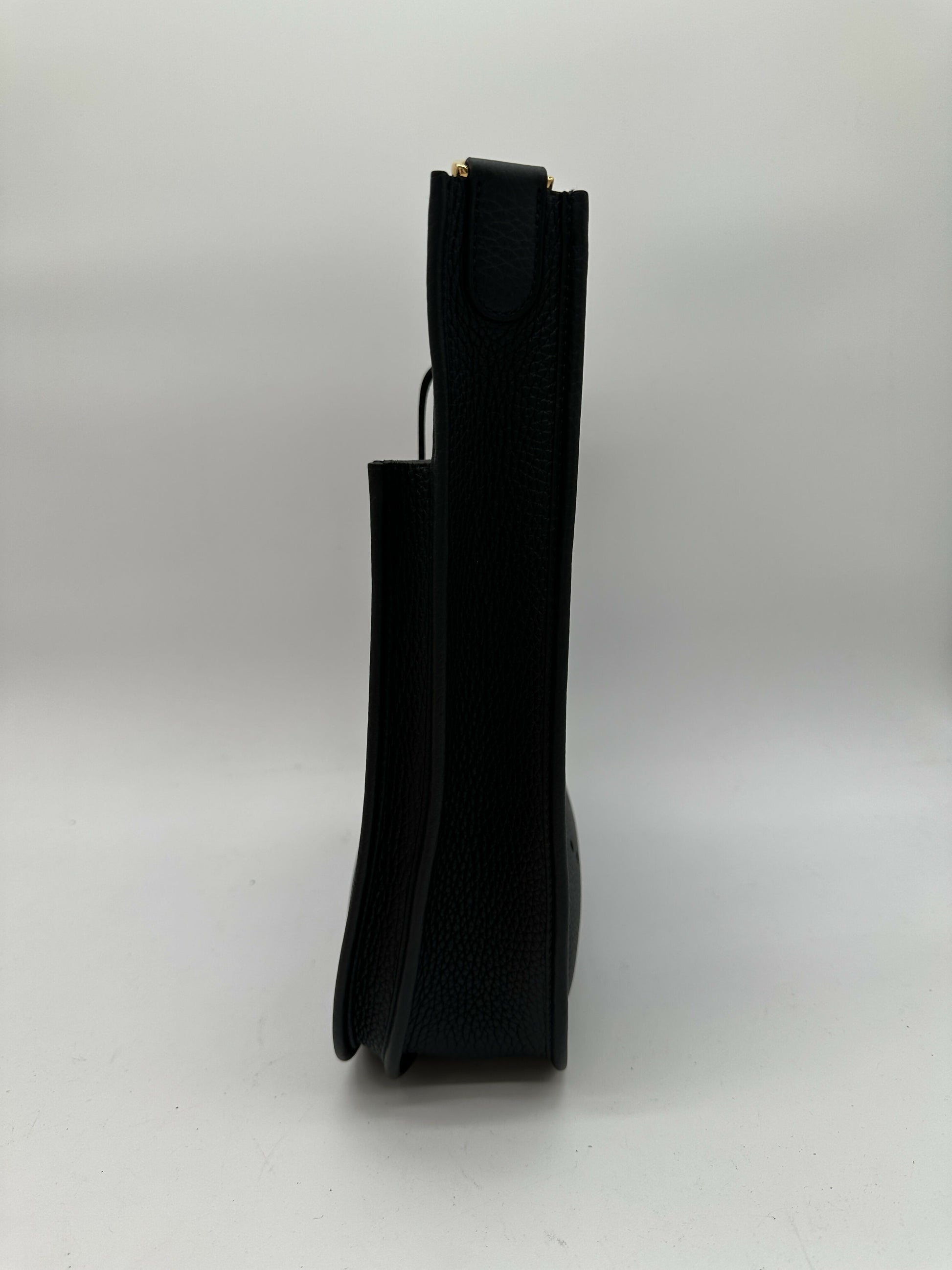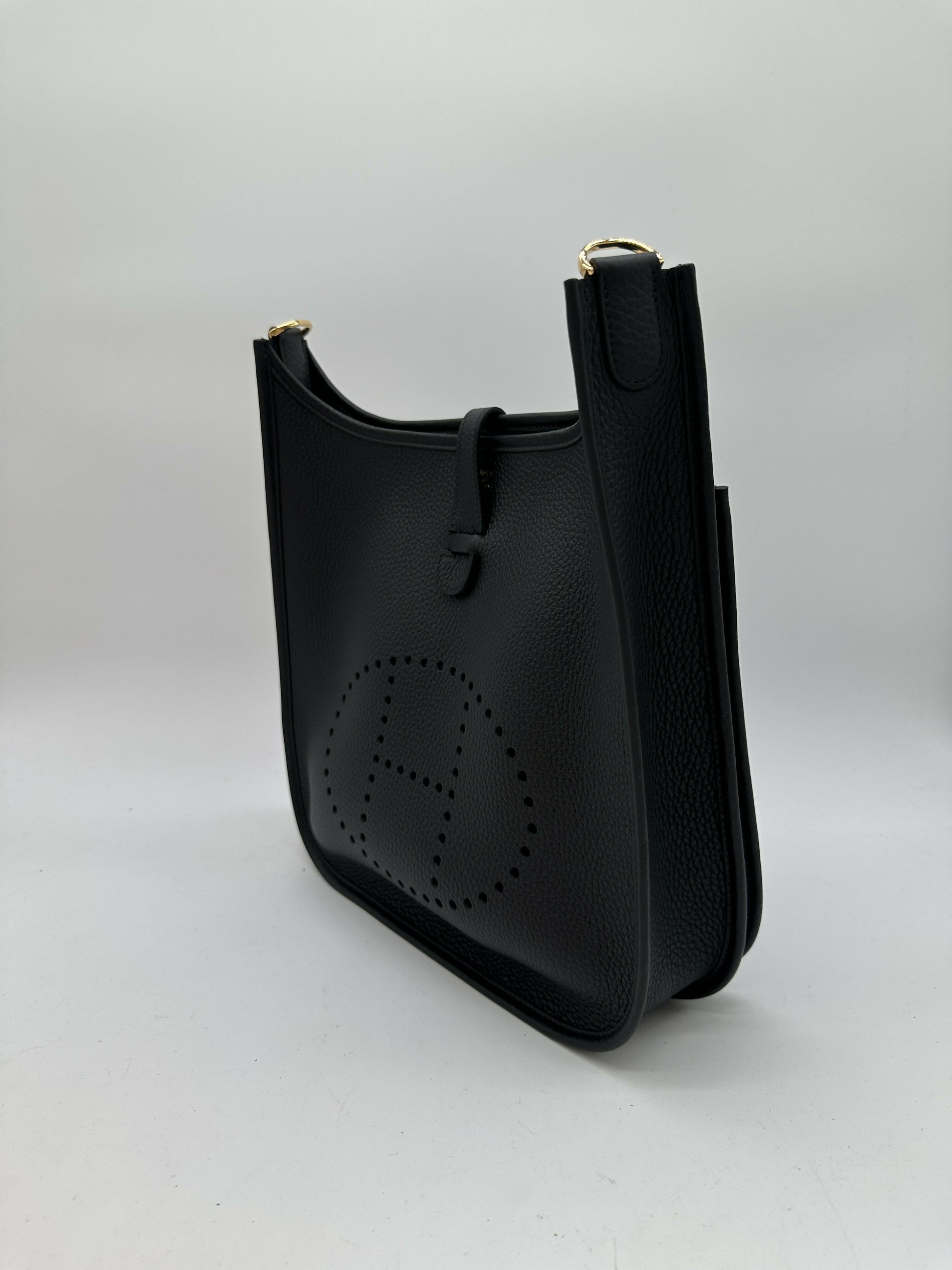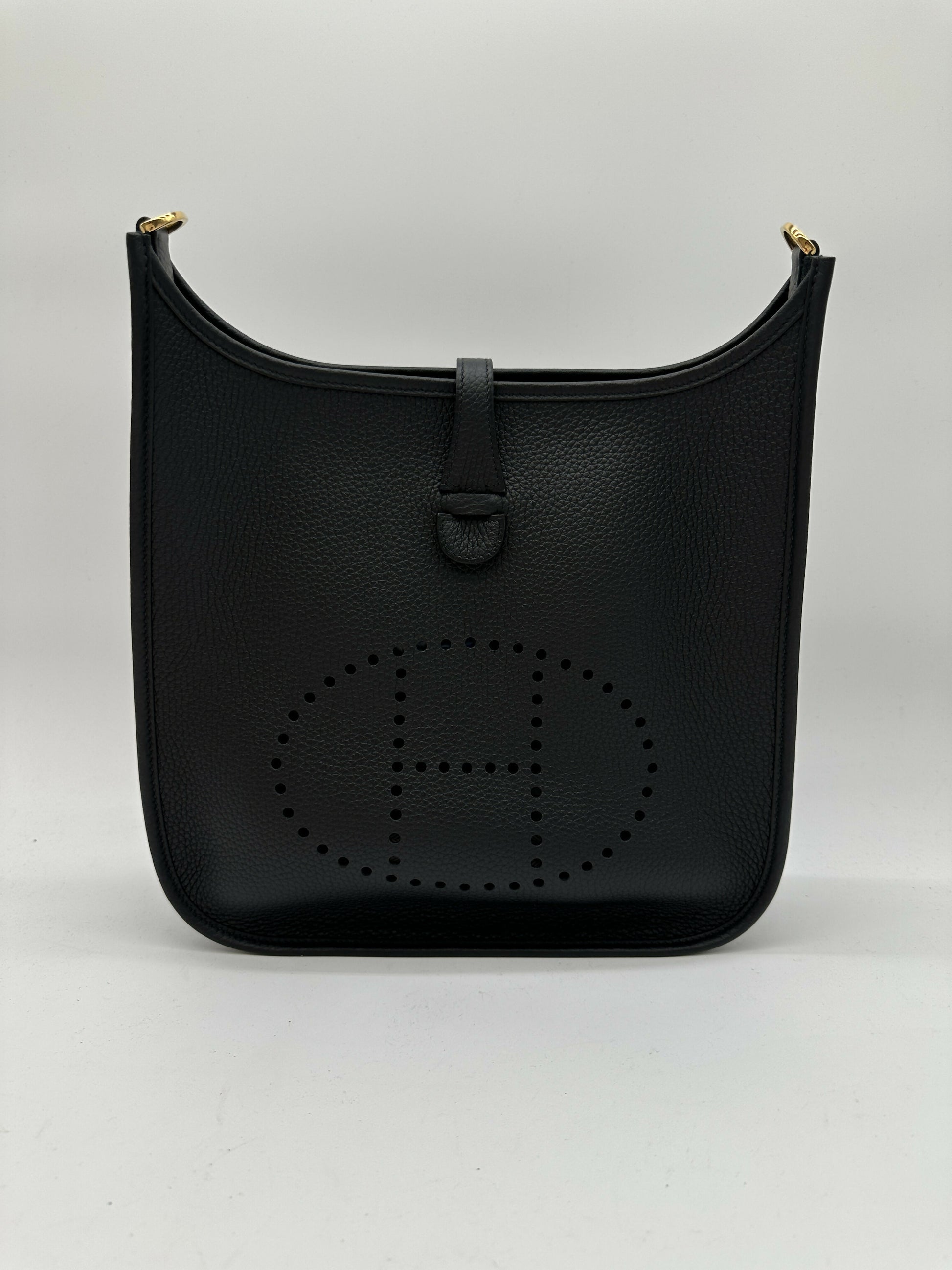 The Hermès Evelyne III 29 in Black with gold hardware, stamp K, is a timeless crossbody that blends casual practicality with refined elegance. Crafted from supple leather, its classic black tone is elevated by the warmth of gold hardware, while the signature perforated H and adjustable strap highlight its effortless, functional design, making it an ideal everyday companion with understated sophistication.