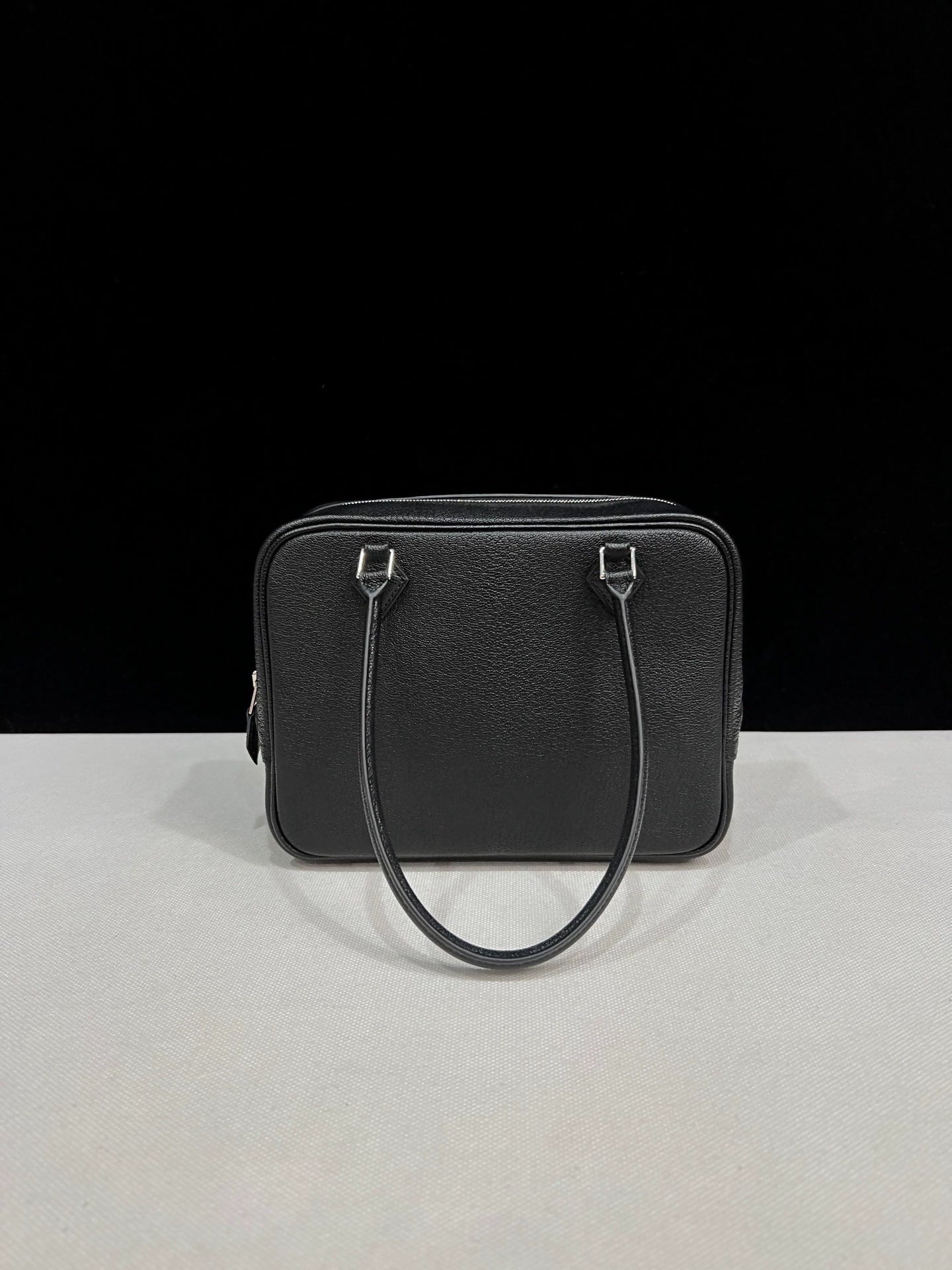 This mini plume bag from Hermes is a timeless and luxurious accessory. Made with black leather and palladium hardware, it offers a sleek and stylish look. Perfect for any occasion, this brand new bag is a must-have for any fashion-forward individual looking to elevate their style game.