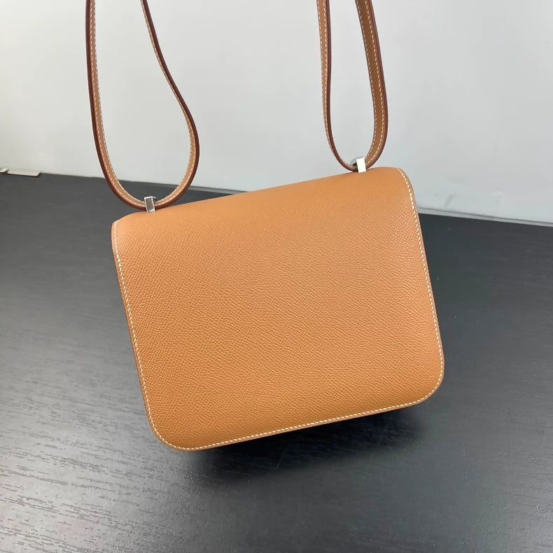 The Hermès Constance 19 showcases exquisite craftsmanship and elegance through its gold-brown Epsom leather and Palladium hardware. As a brand new item, it is the perfect addition to any luxury handbag collection. Experience the timeless beauty and sophistication of Hermès with this stunning accessory.
