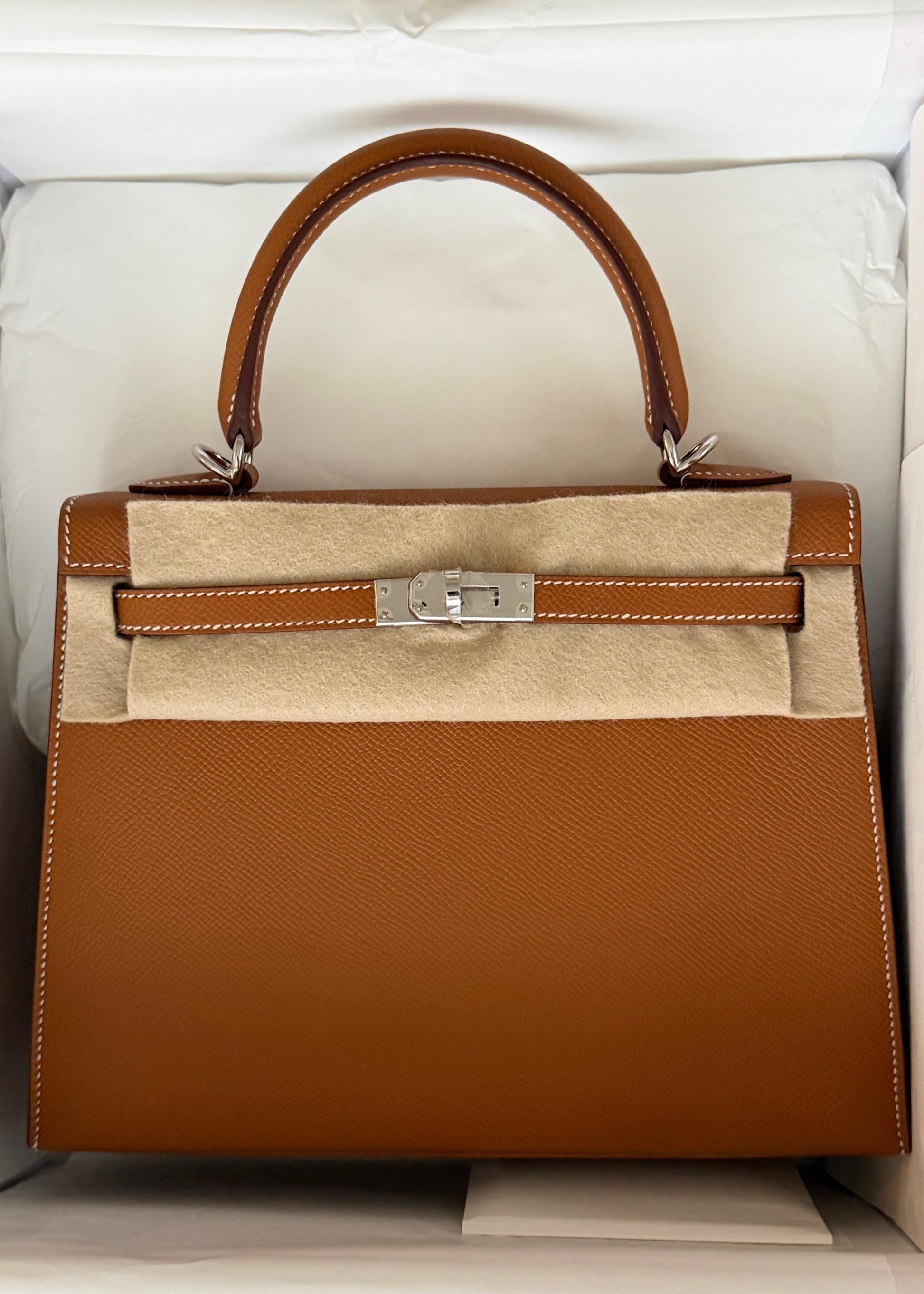 The Hermès Kelly 25 Sellier boasts a timeless design with brand new full set accessories and durable Epsom leather. Finished with palladium hardware for a touch of luxury. Elevate your style and add a long-lasting statement piece to your collection.