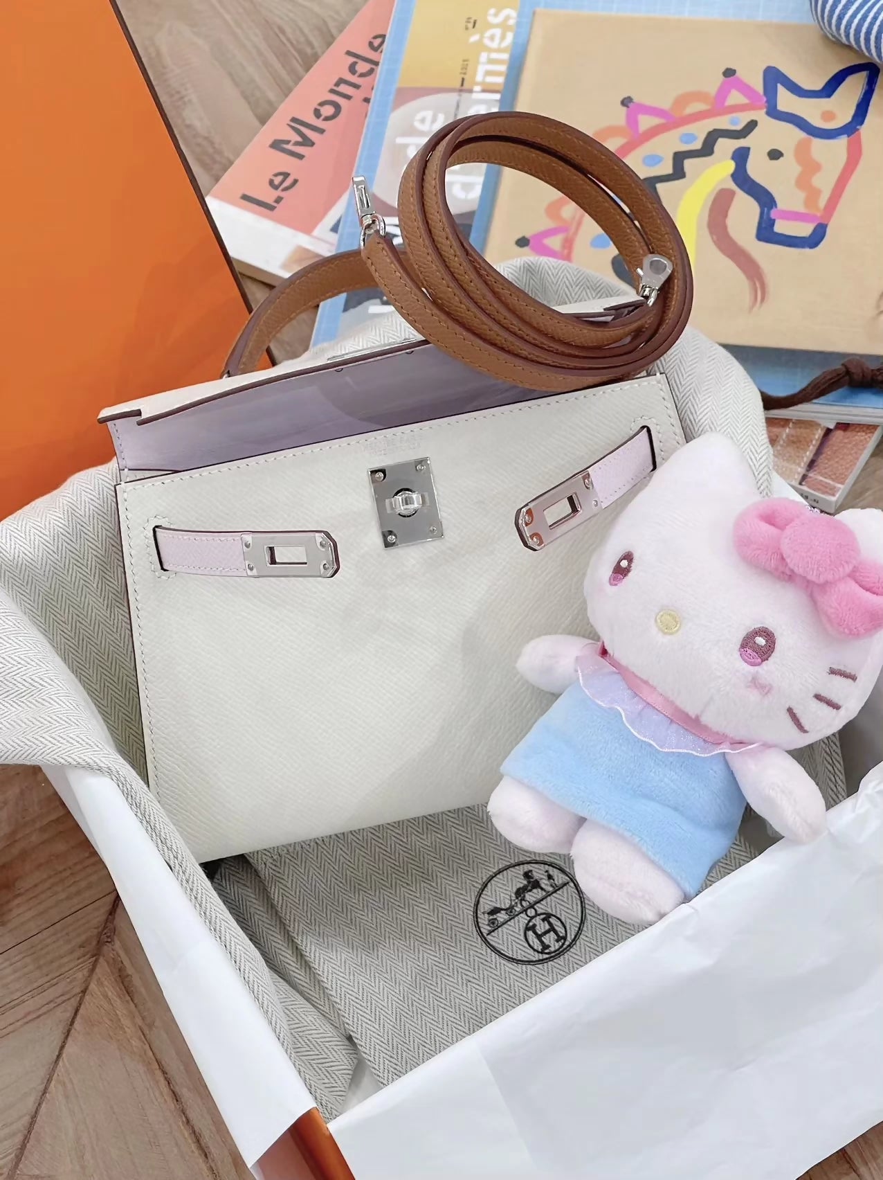 Hermès Mini Kelly 20 craie/gold/mauve Epsom leather palladium hardware