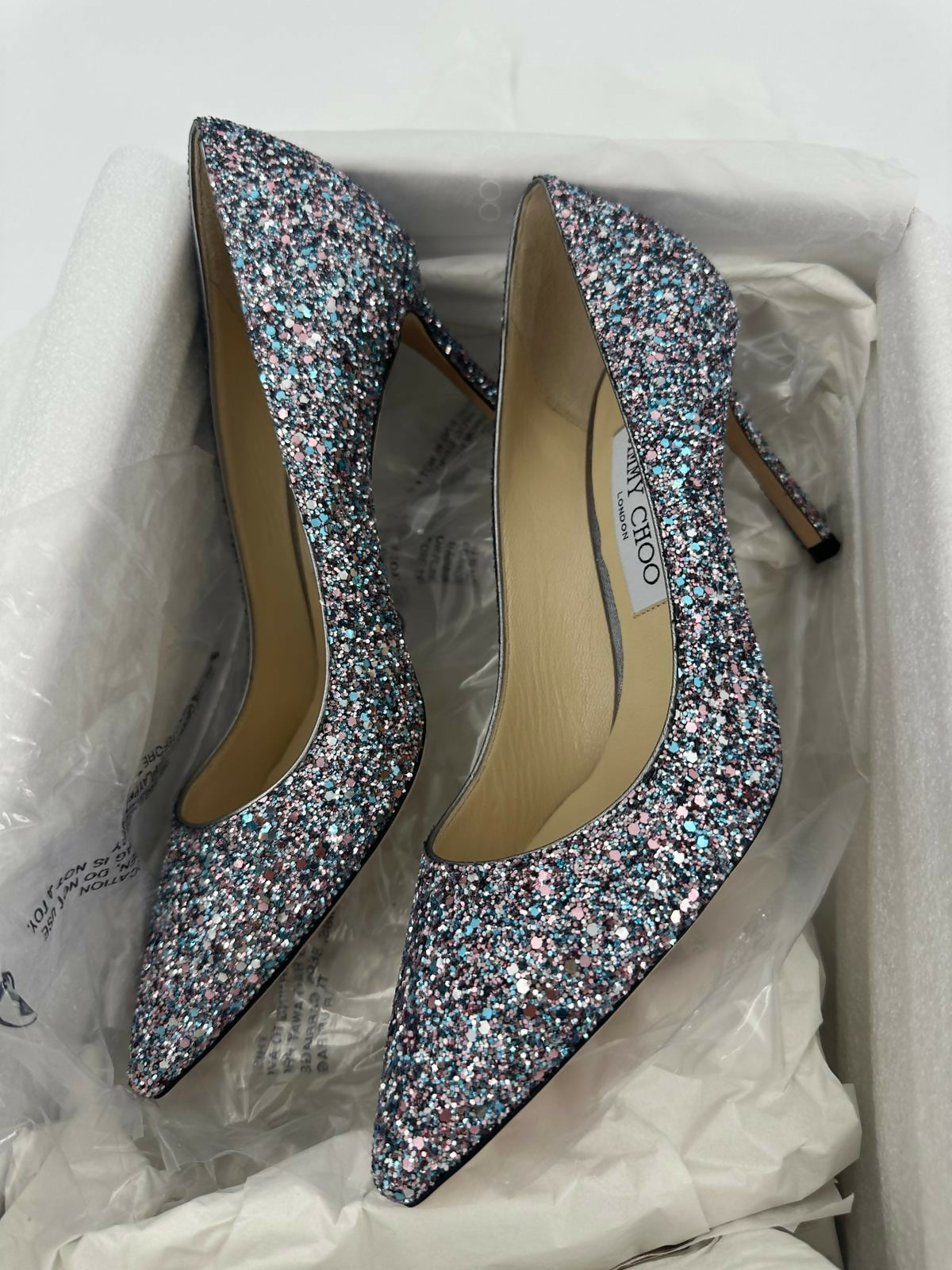 Jimmy Choo Romy Light Blue Multicolour Glitter Pumps Size 38.5
