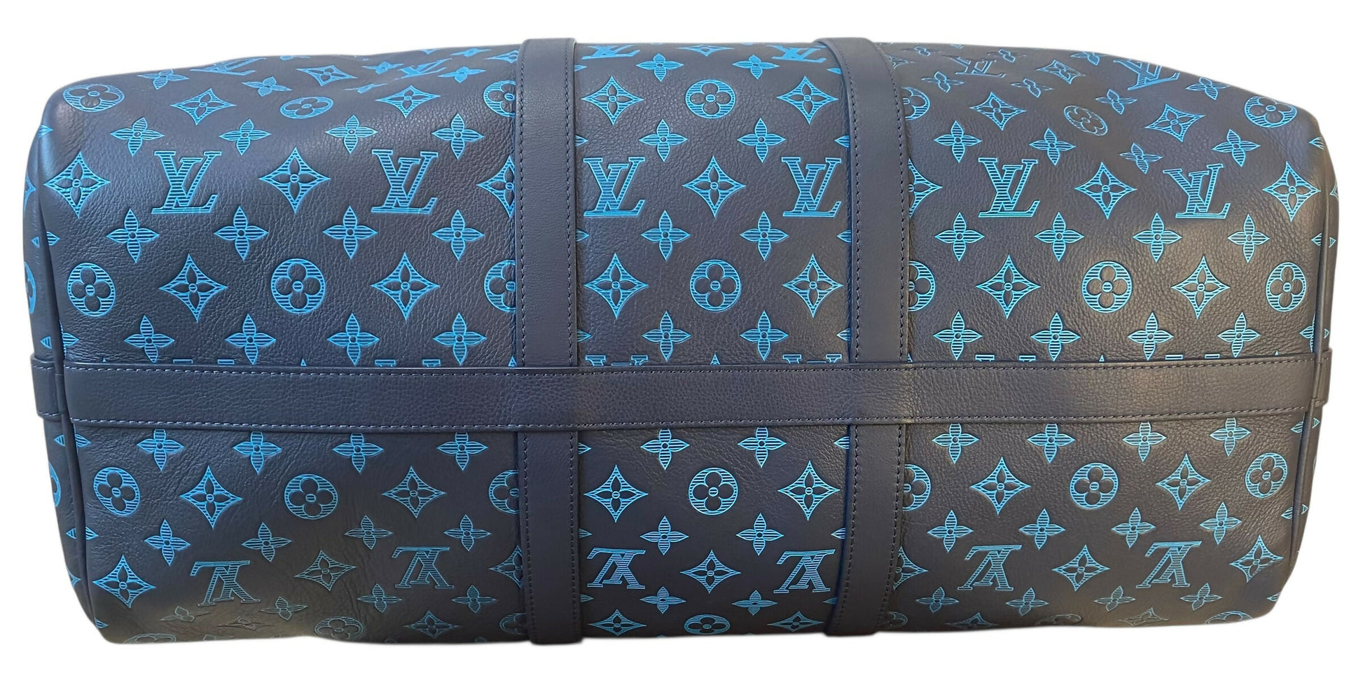 Louis Vuitton LIMITED EDITION Keepall Navy Teal River Bandouliere 50 Monogram Shadow!
