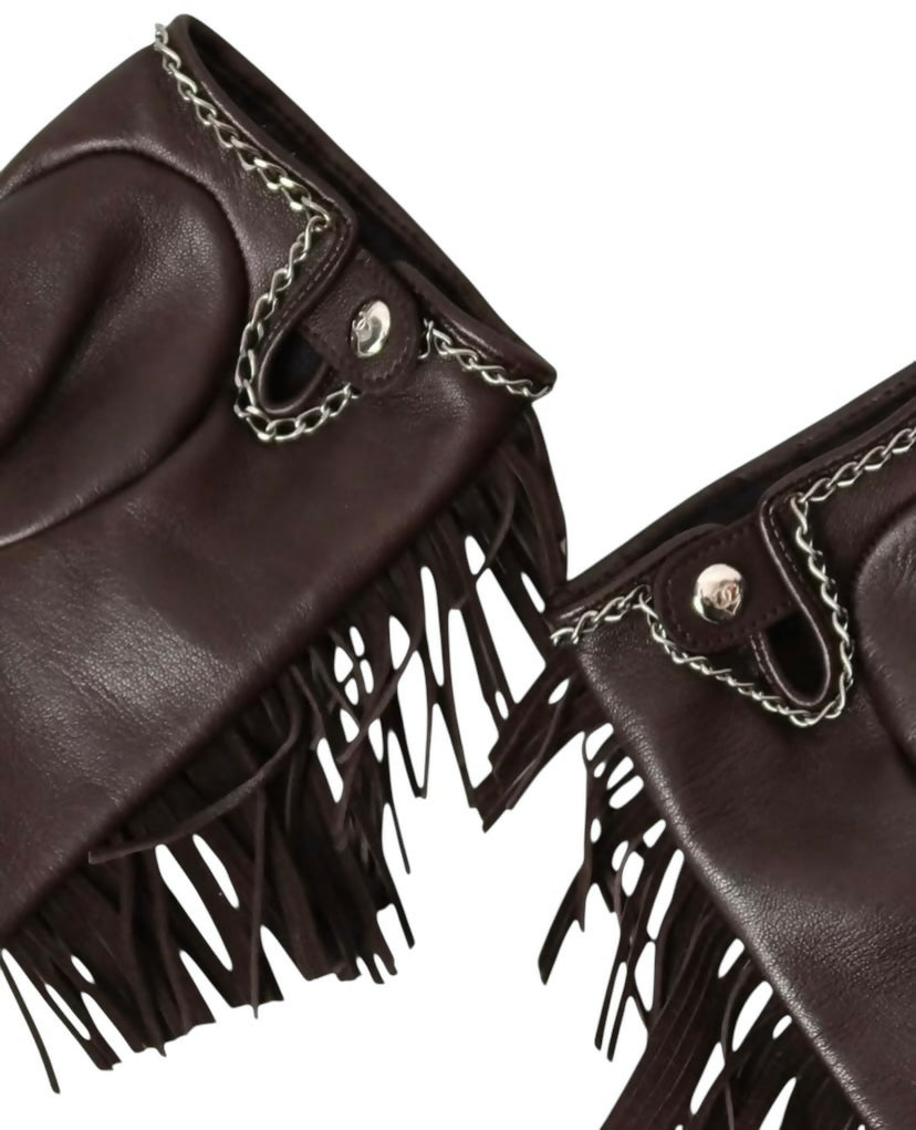 Rare Chanel 14A Paris Dallas Dark Brown Multicolor Gloves 8