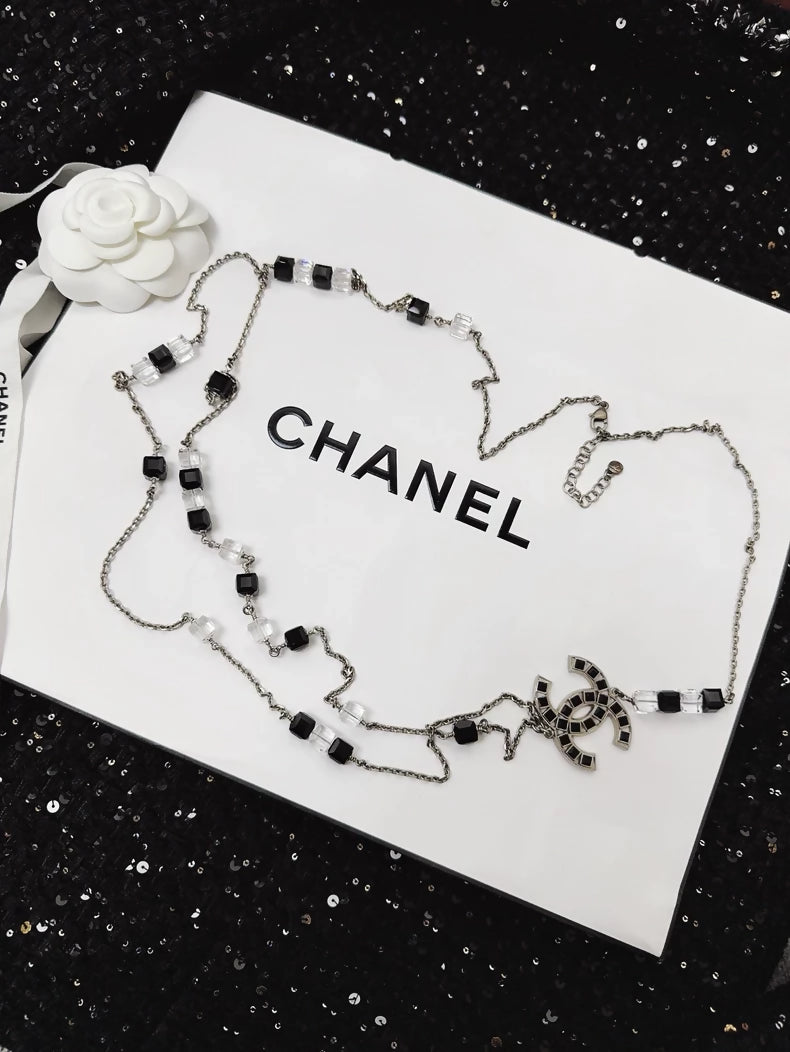 Upgrade your style with this rare, vintage Chanel double C waist chain in black and white glass. The double strand design adds a touch of elegance, while the new condition (99%) ensures long-lasting wear. Elevate your look with this unique, must-have accessory.