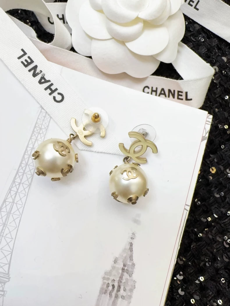 Expertly crafted by Chanel, these vintage gold enamel earrings feature a dual C design and a lustrous pearl, creating a truly unique piece. In 99% new condition, these earrings are a perfect addition to any collection. Elevate your style with these timeless and elegant earrings.